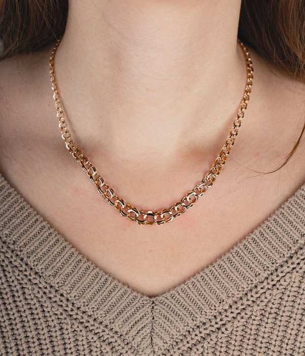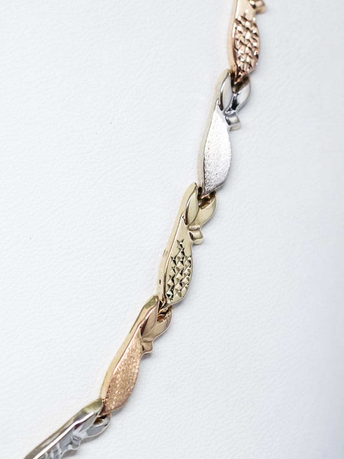 Vackert trefärgat halsband med halvstela länkar. Gott skick på länkar och lås.