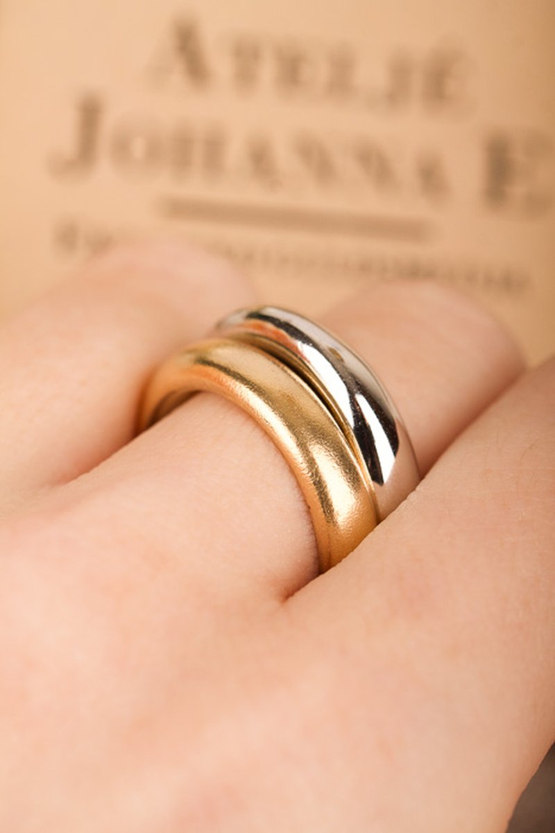 Underbara organiska former i dessa ringar i 18 K guld. En i rött guld som är matterad och en blank i vitguld.