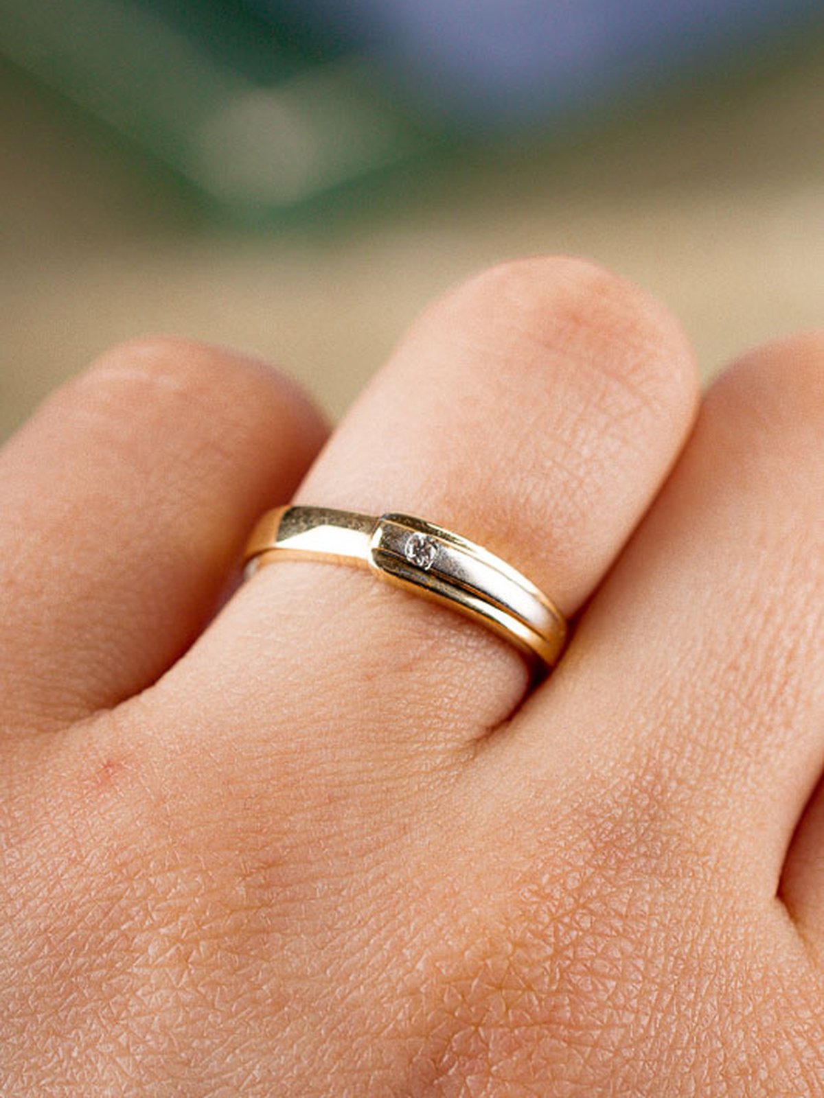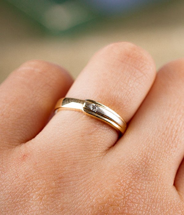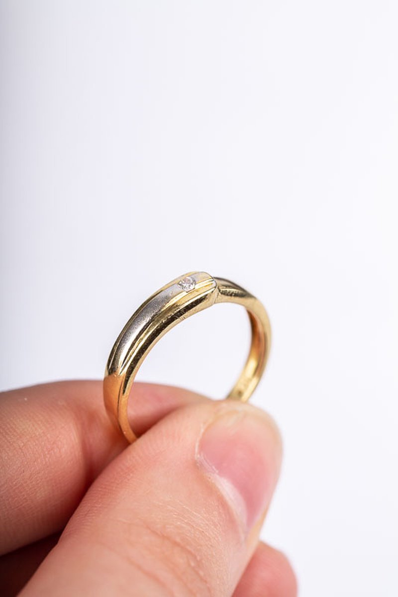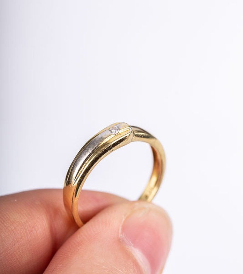 18k guldring med 0,03ct diamant infattat i mattpolerat vitguld. Söt vardagsring!