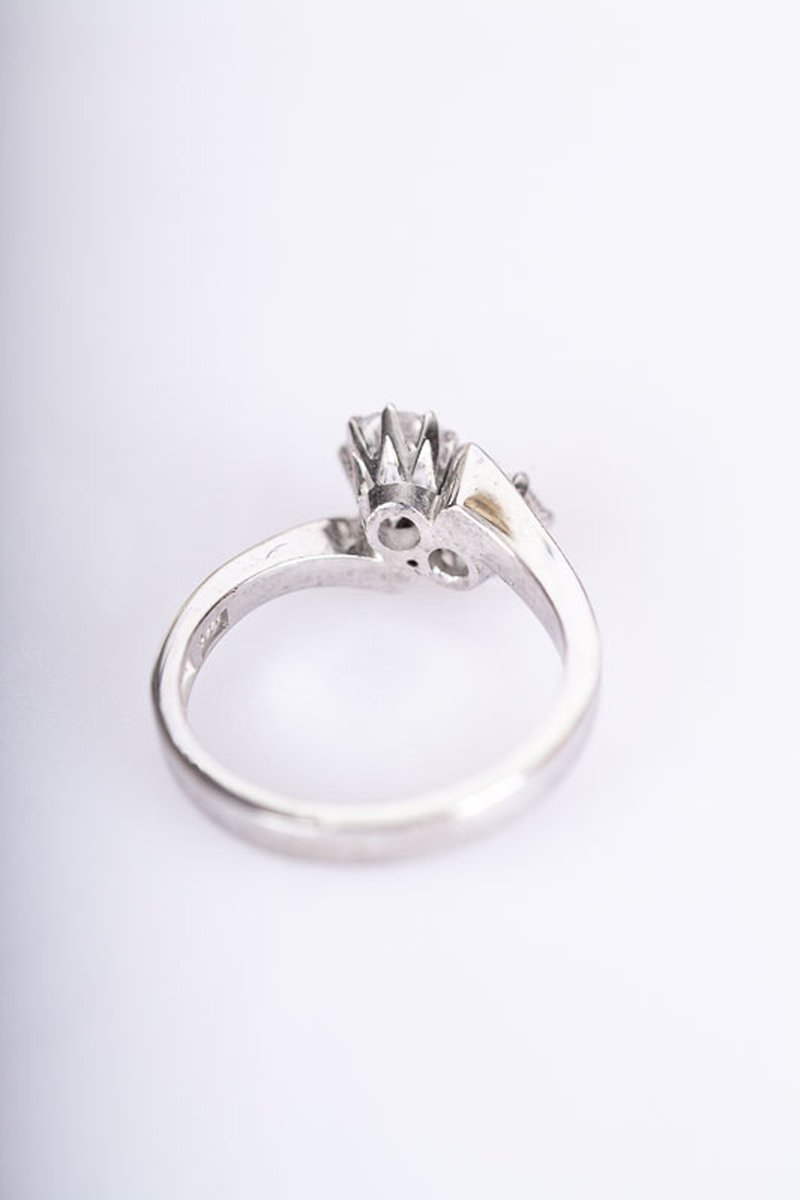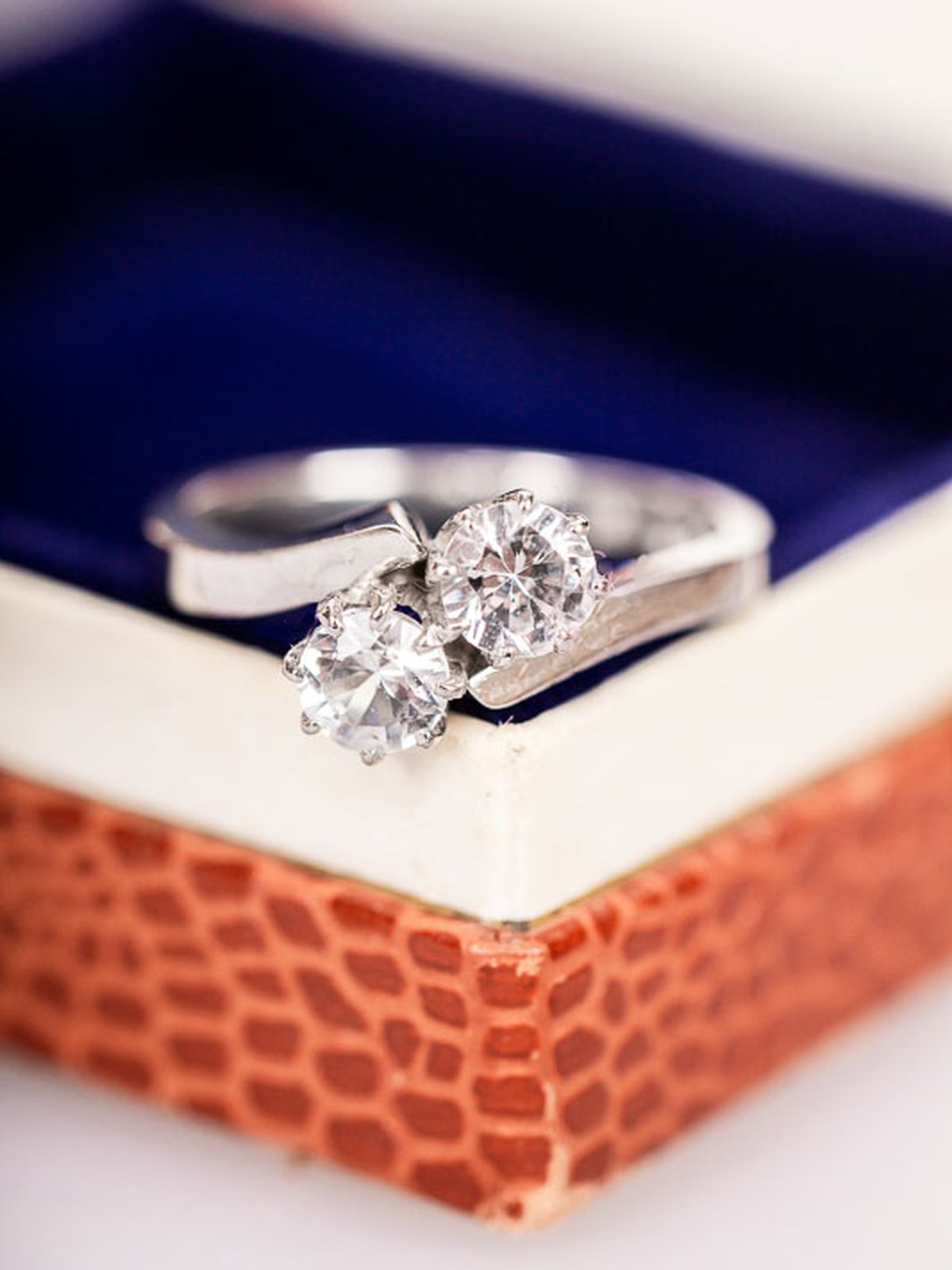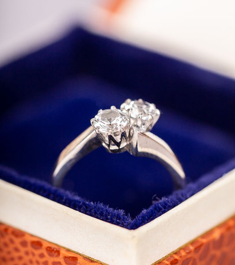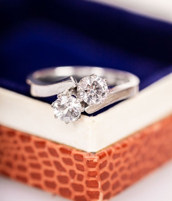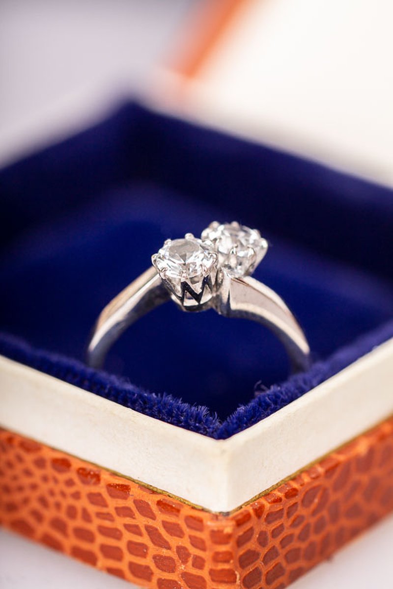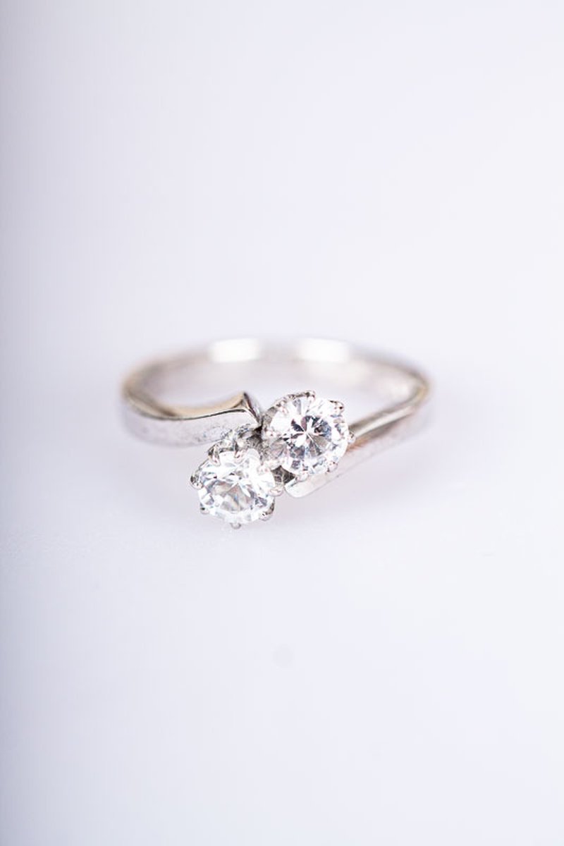 Tvillingring i vitguld tillverkad på 60-talet i Stockholm. Mycket gott skick med intakta stenar som glimmar vackert i ljuset.