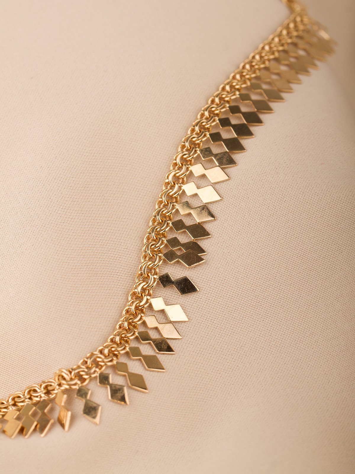 Pärlcollier förvaras bäst liggandes på en mjuk yta, dock inte av bomull. Detta torkar ur pärlorna.