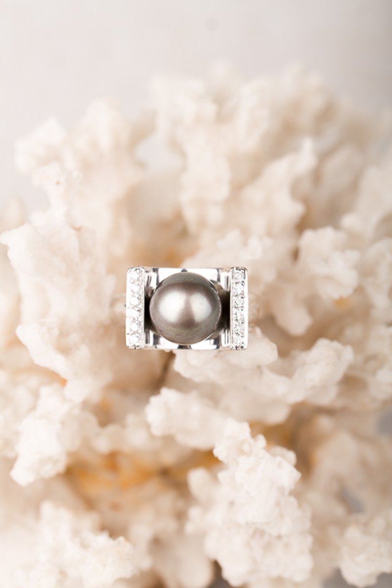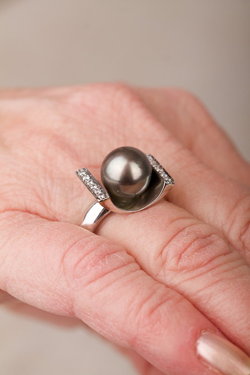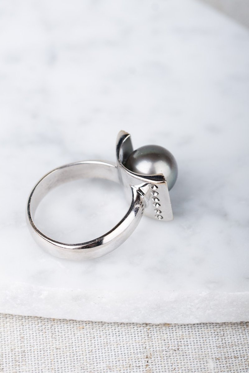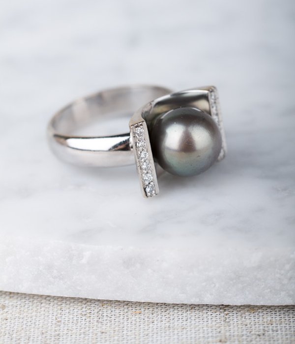 Vacker välgjord statementring med en tahitipärla i centrum.