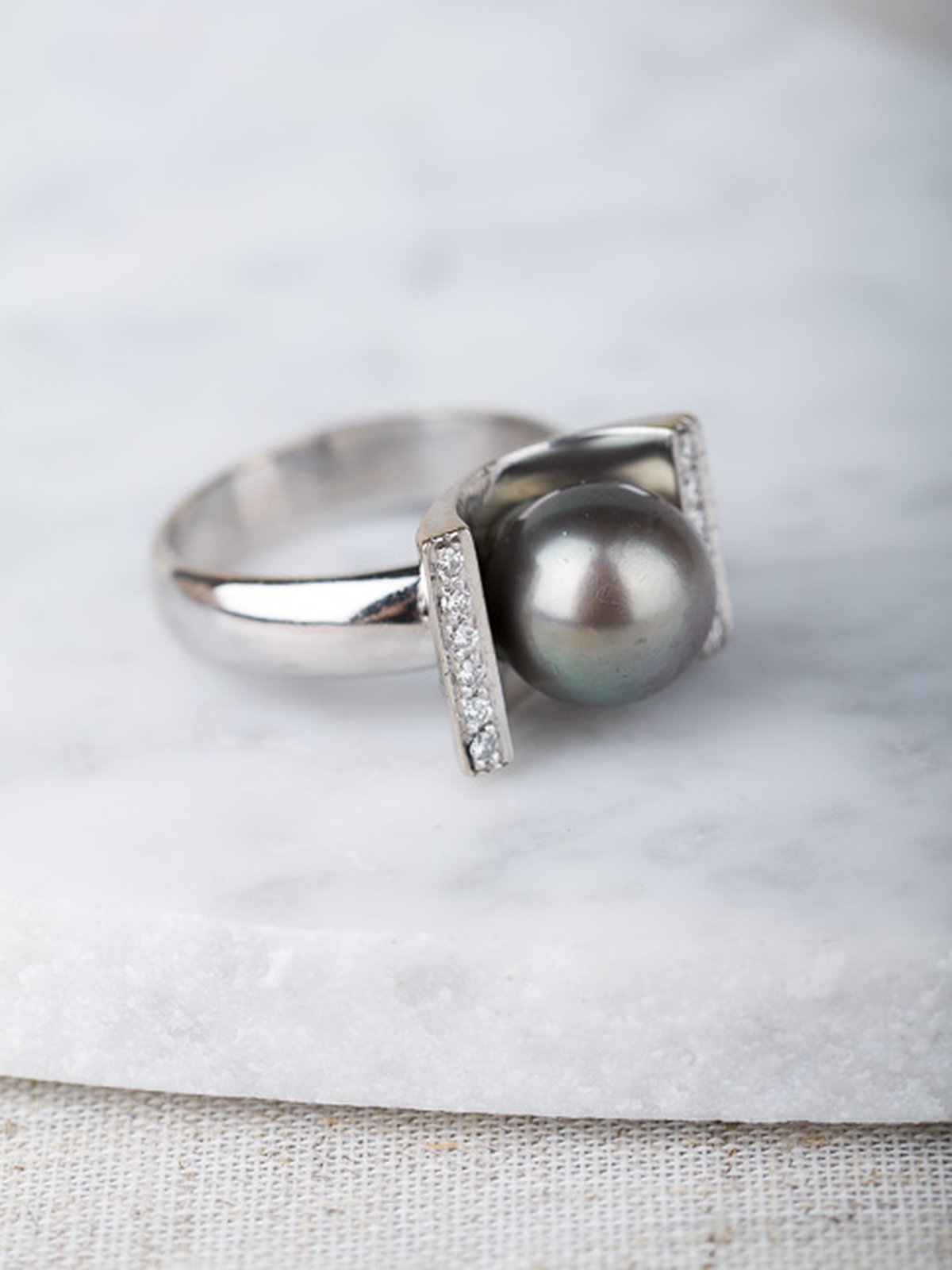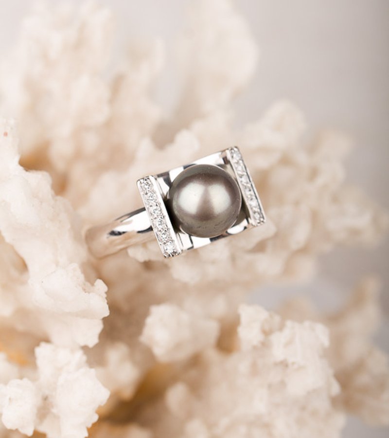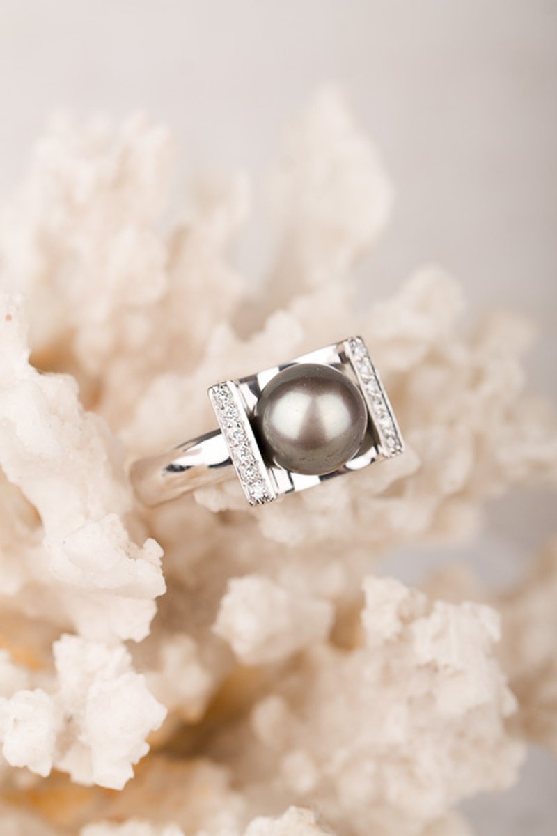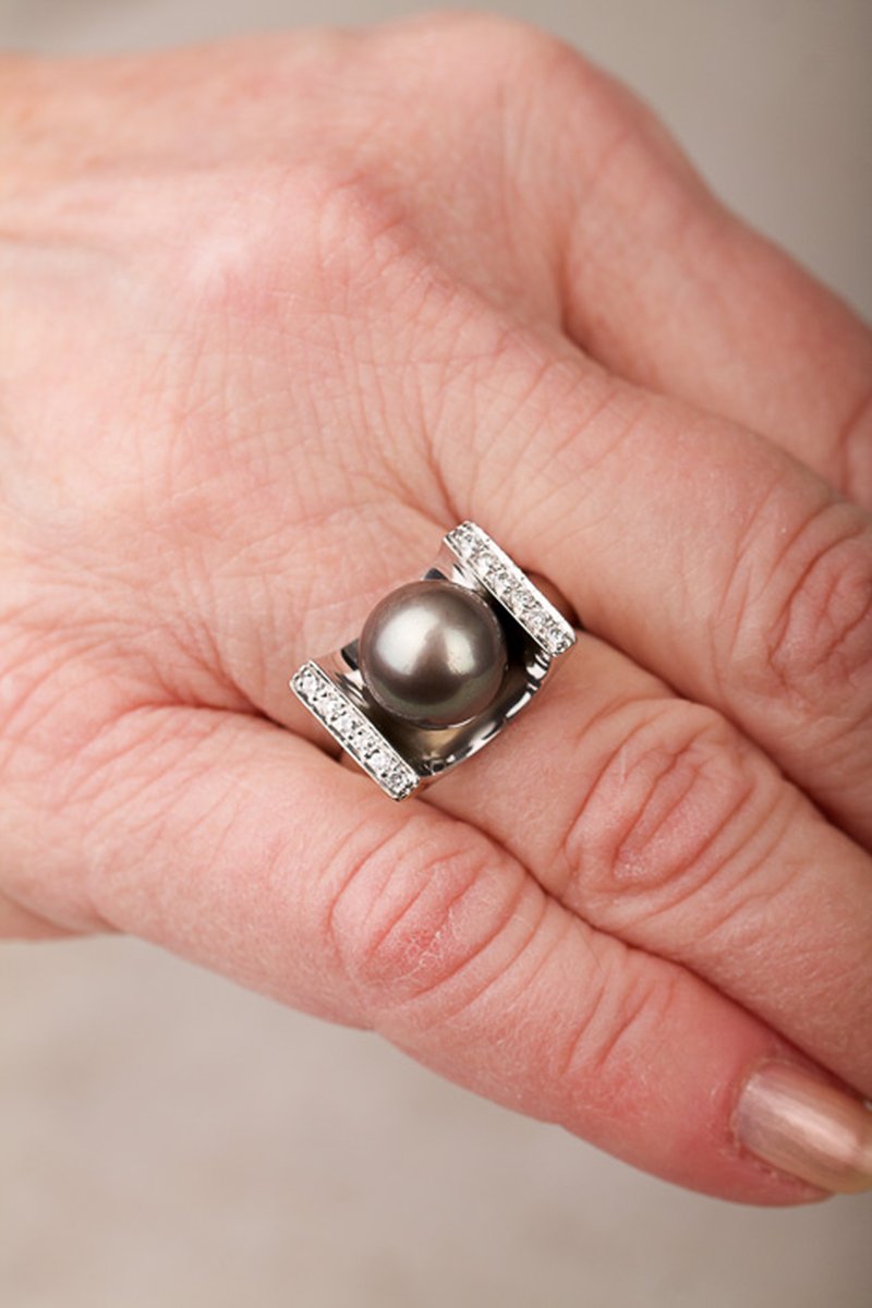 Vacker välgjord statementring med en tahitipärla i centrum.
