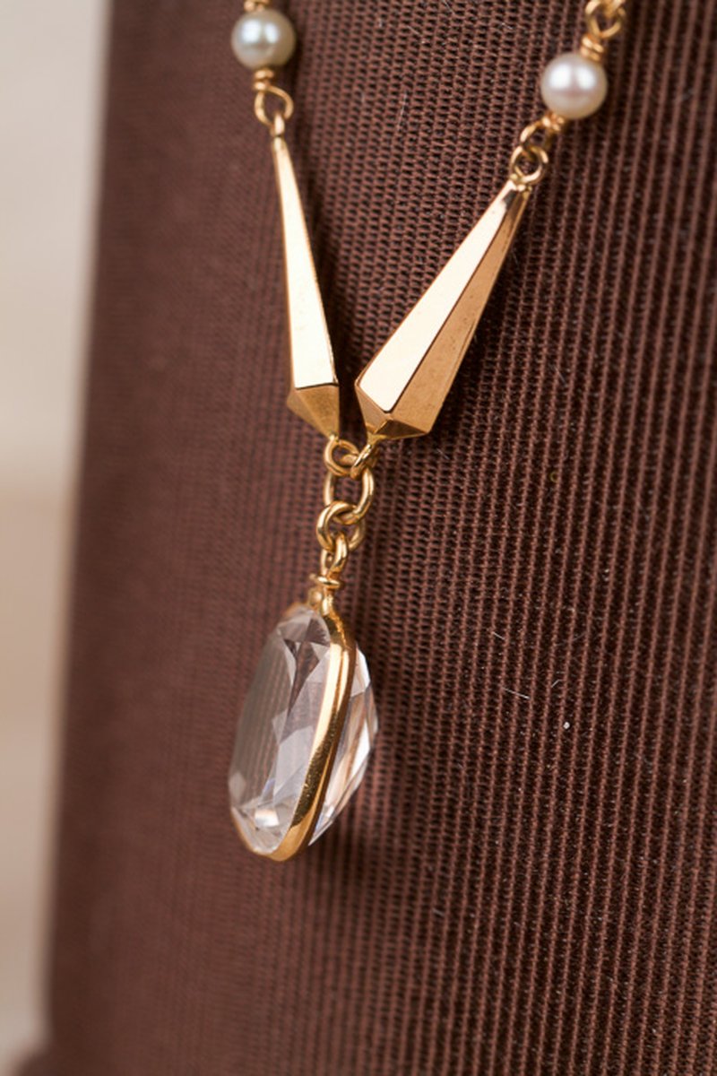 Pärlcollier förvaras bäst liggandes på en mjuk yta, dock inte av bomull. Detta torkar ur pärlorna.