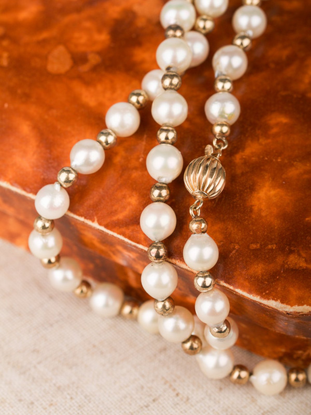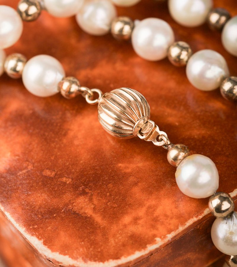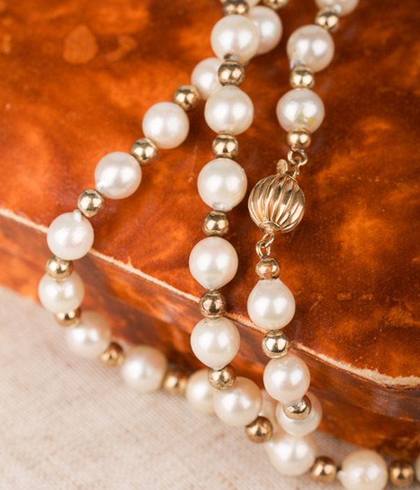 Pärlcollier förvaras bäst liggandes på en mjuk yta, dock inte av bomull. Detta torkar ur pärlorna.