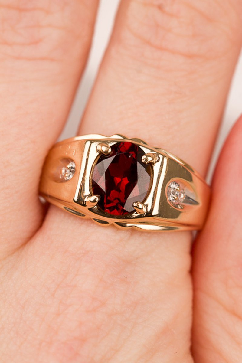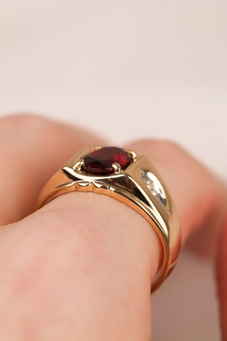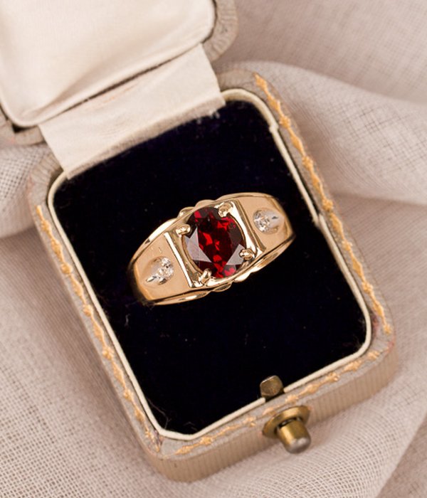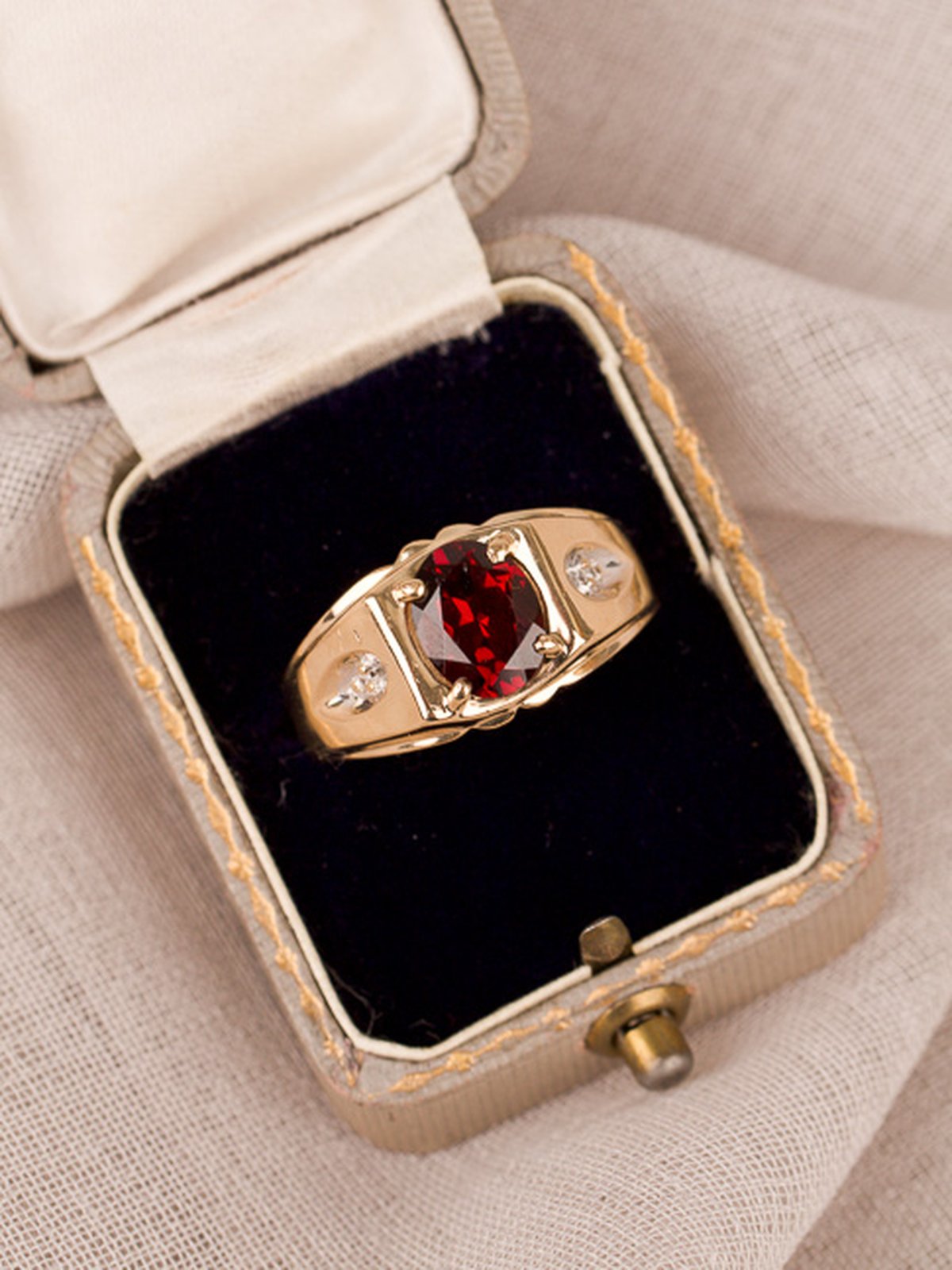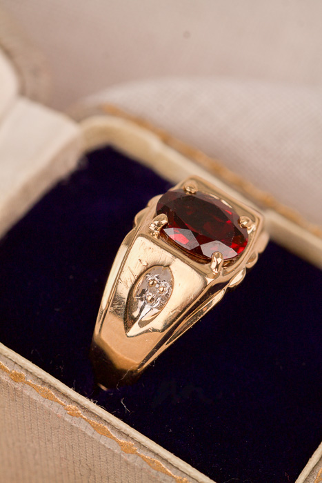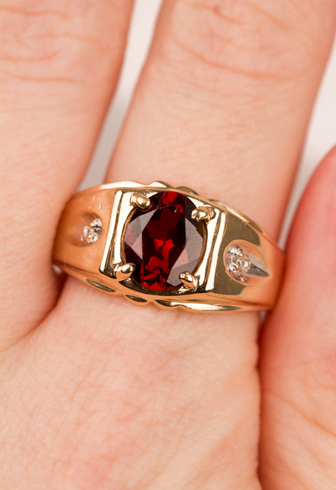 14K guld, granat 6x9mm, 8/8-slipade diamanter 2 x 0,005 ct