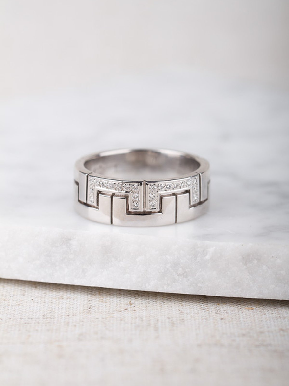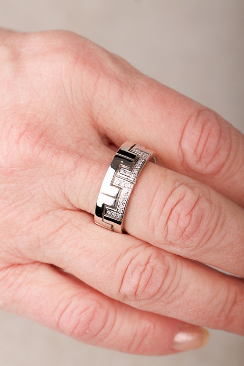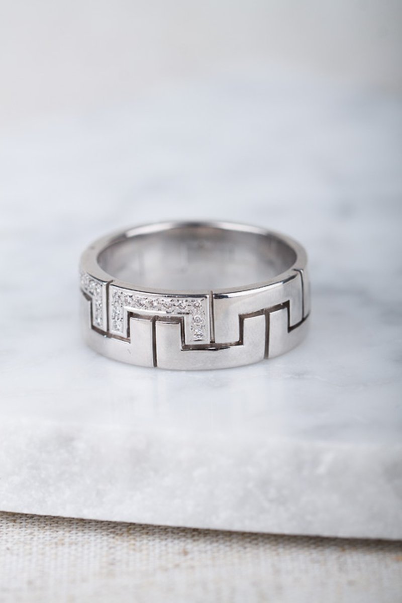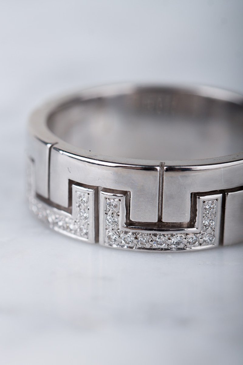 Lyxig vitguldring med grafiskt mönster och diamanter