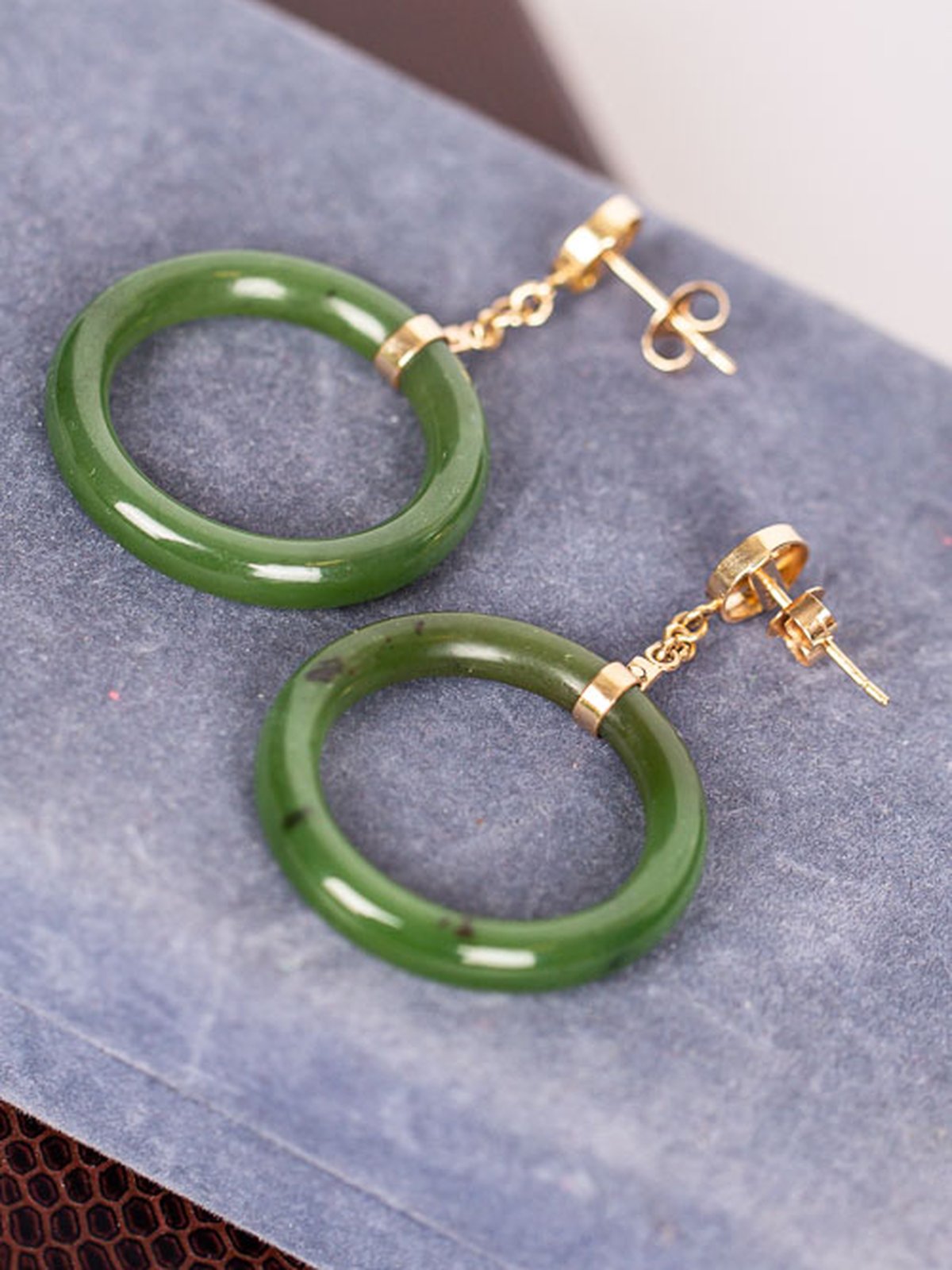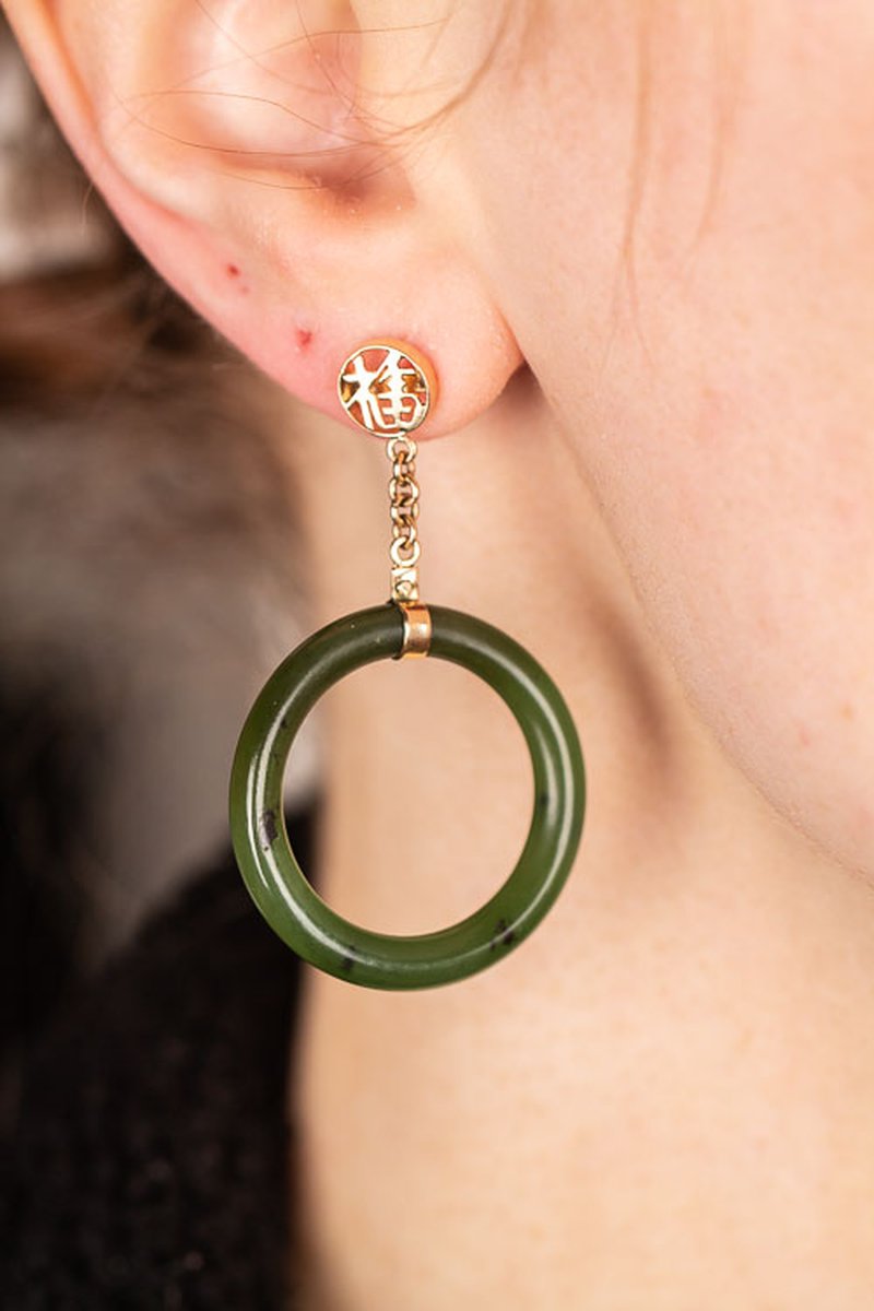 Örhängen i 14K med jade. Okänd tillverkade, fint skick.