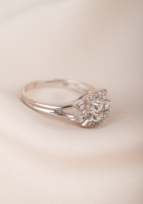 18K vitguld, 4 x 0,04 + 14 x 0,01 ct diamanter.