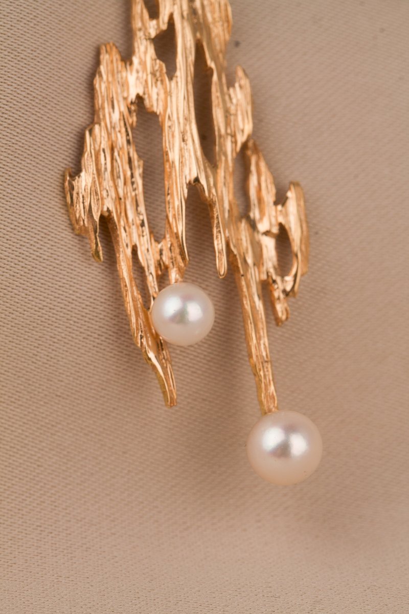 18K guld, odlade pärlor, en st ca. 5,2 mm, en st ca. 4,4 mm