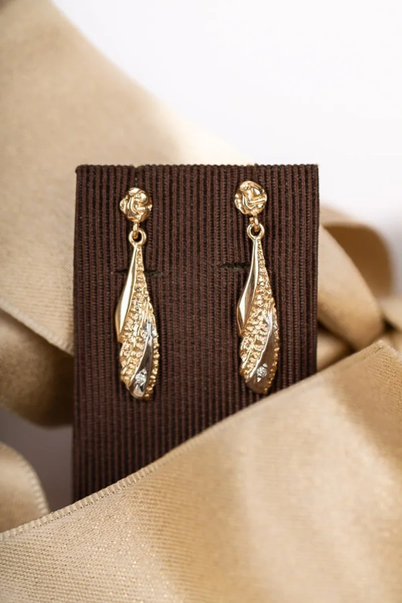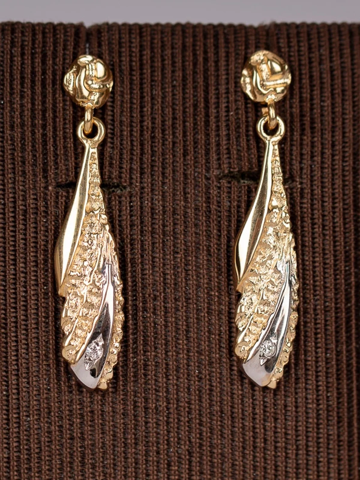 Vildmarks-örhängen i guld medvitguldsdetaljer och små diamanter.
