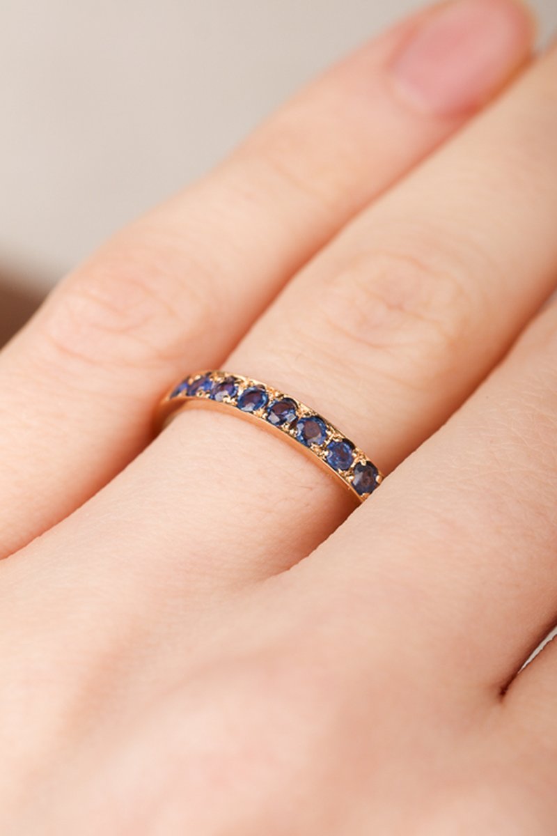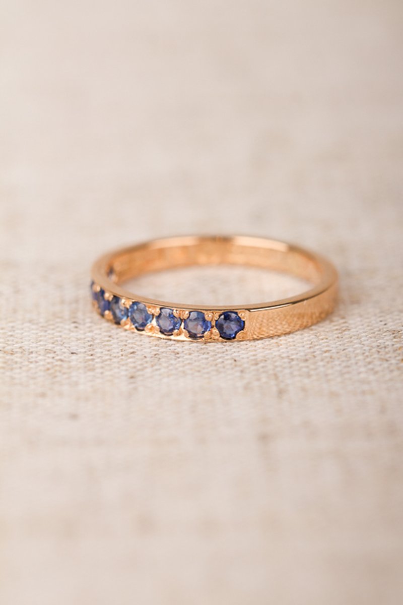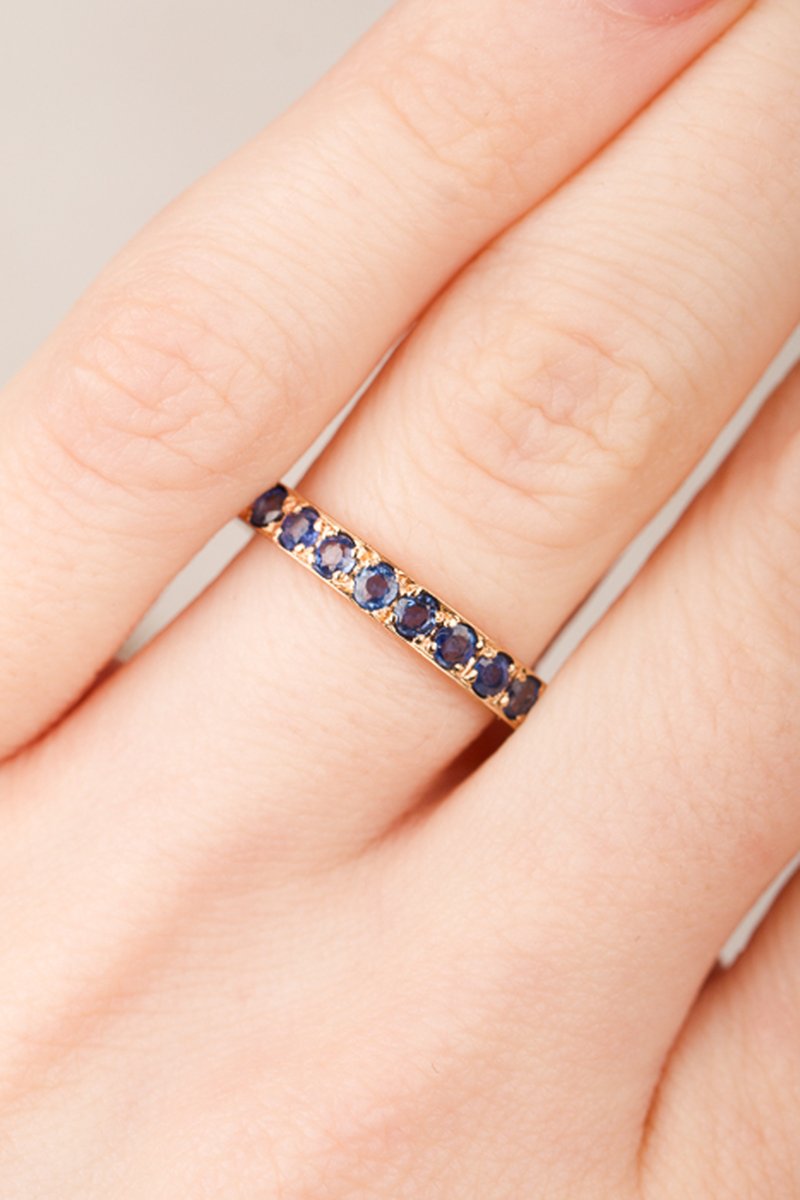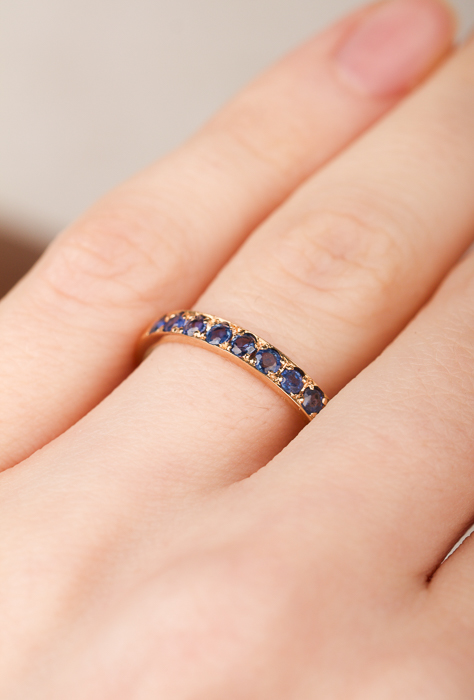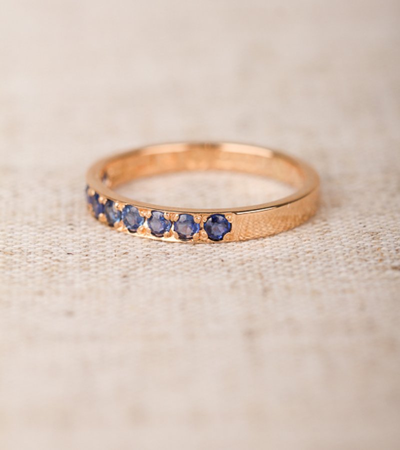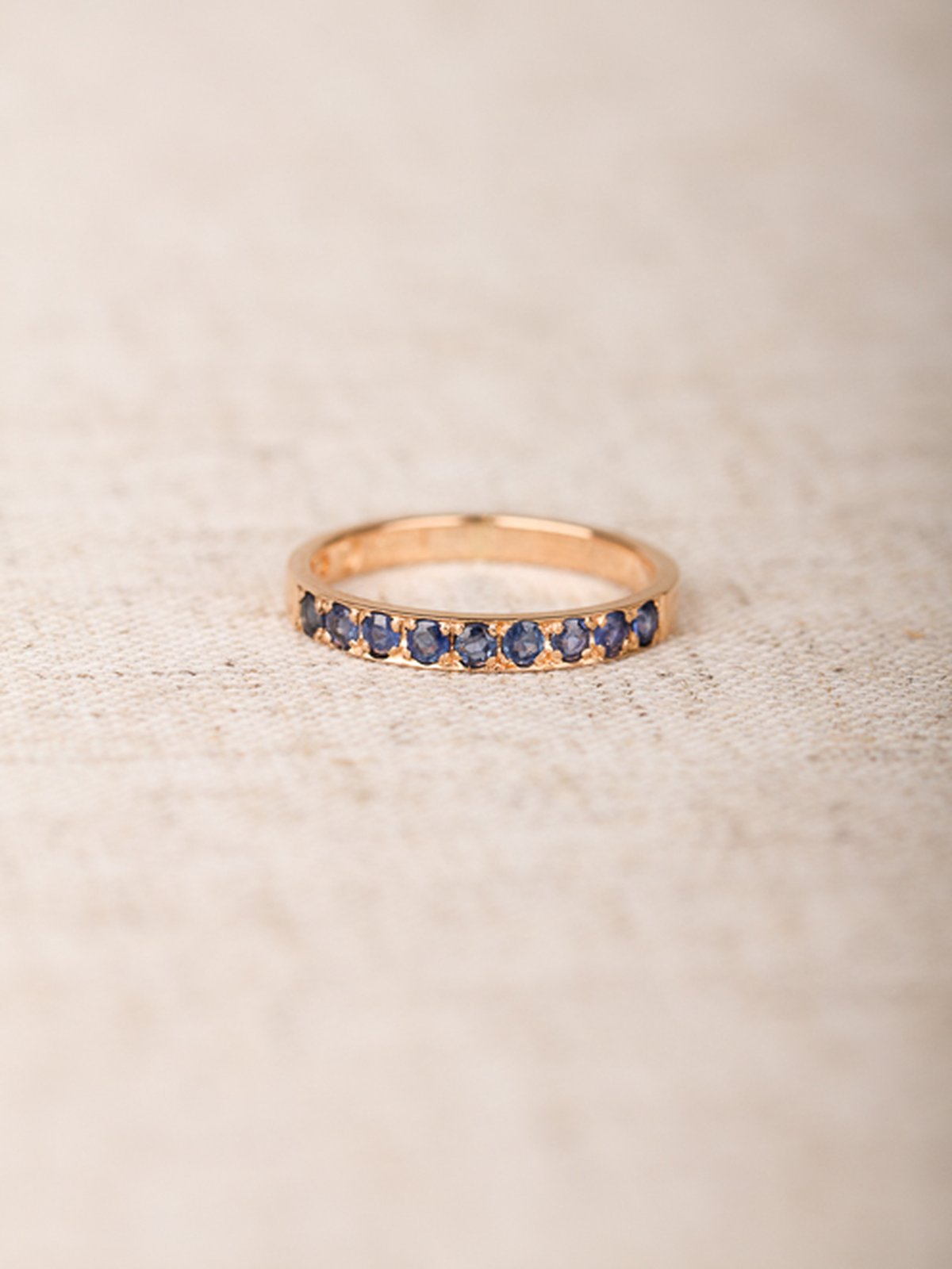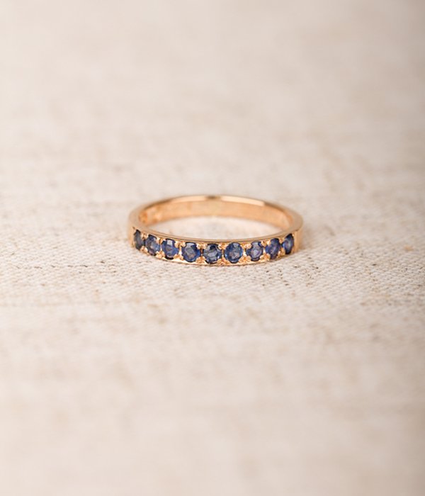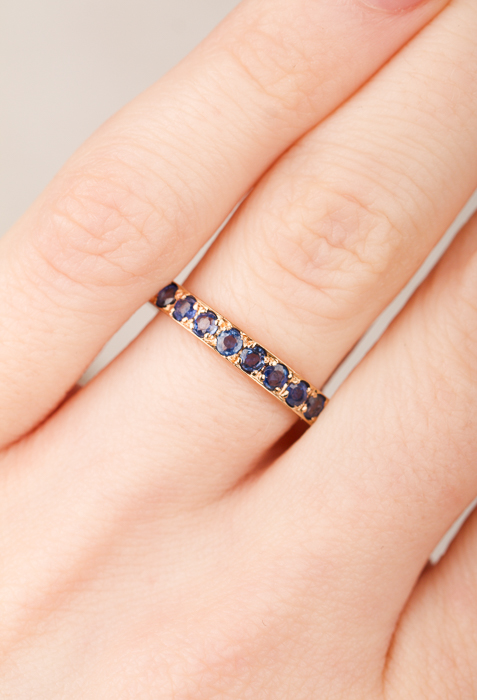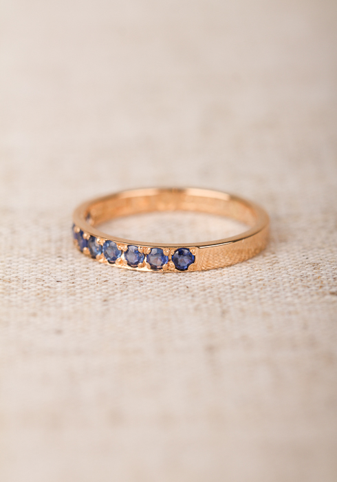 18K guld, 9 st safirer a 2,3 mm, graverad vikt 0,44 ct