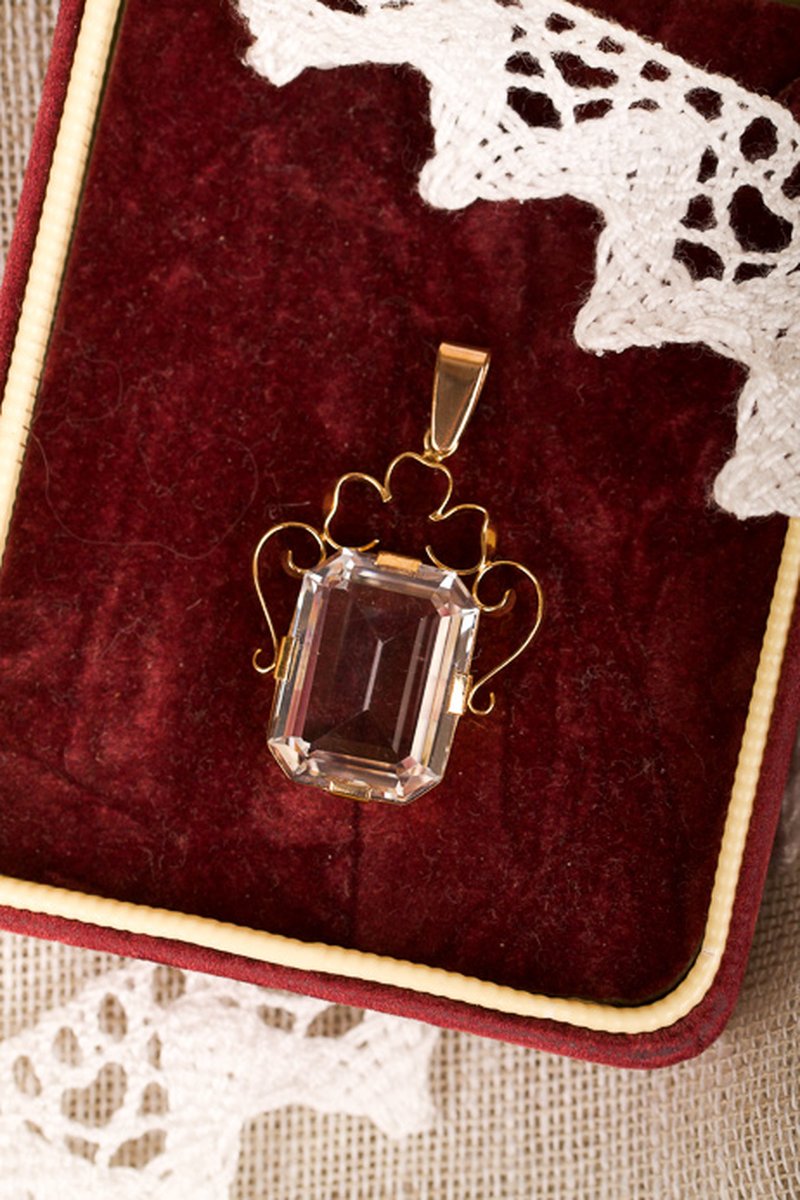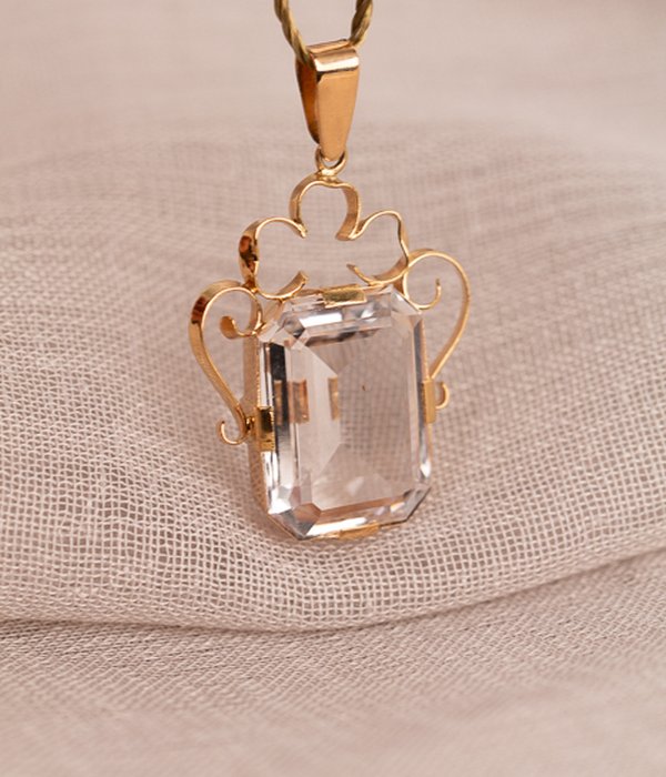 18k guld och en bergkristall 16,5 x 12,5 mm