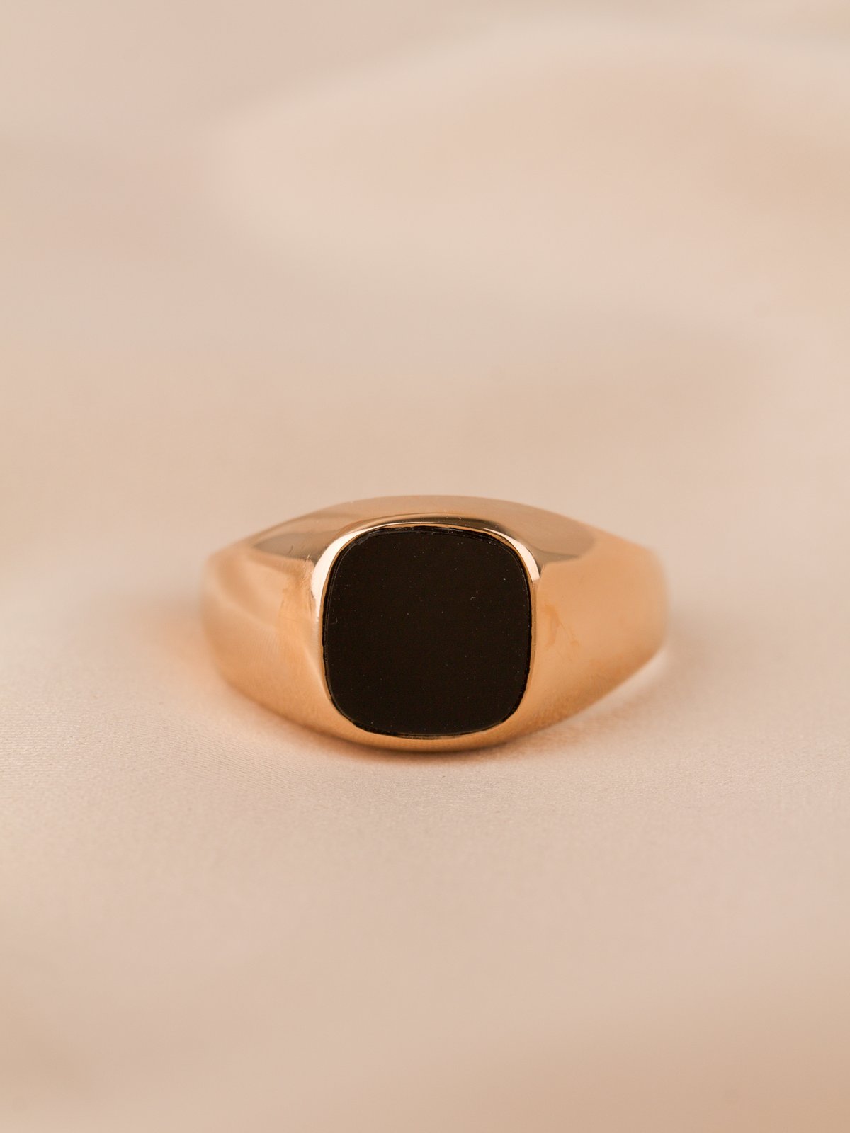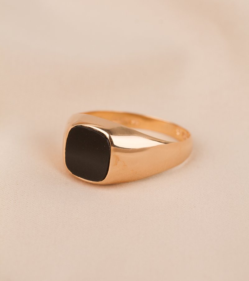 Fin vintage klackring med en svart ädelsten som heter onyx. Tillverkad år 1966 i Göteborg.
