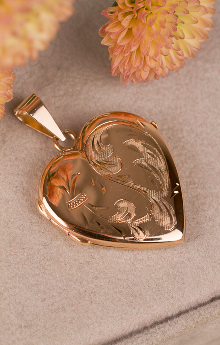 Stor medaljong i form av ett hjärta med vacker gravyr, blank baksida.