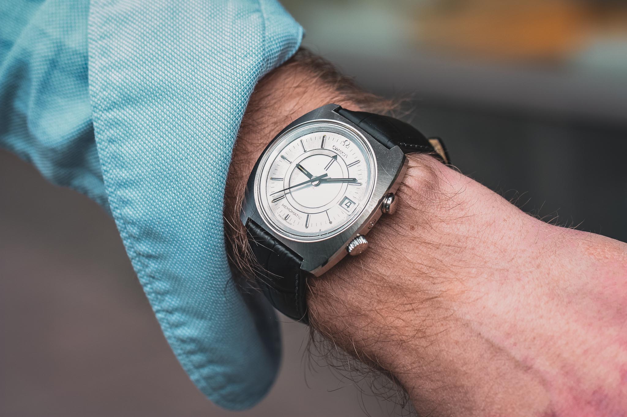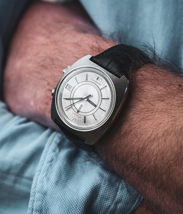 Ett riktigt härligt samlarobjekt för Omegaälskaren. I mycket gott skick med några få tecken på användning. Klockan har fungerande alarmfunktion. Ingår låda från Omega men inte original för modellen.