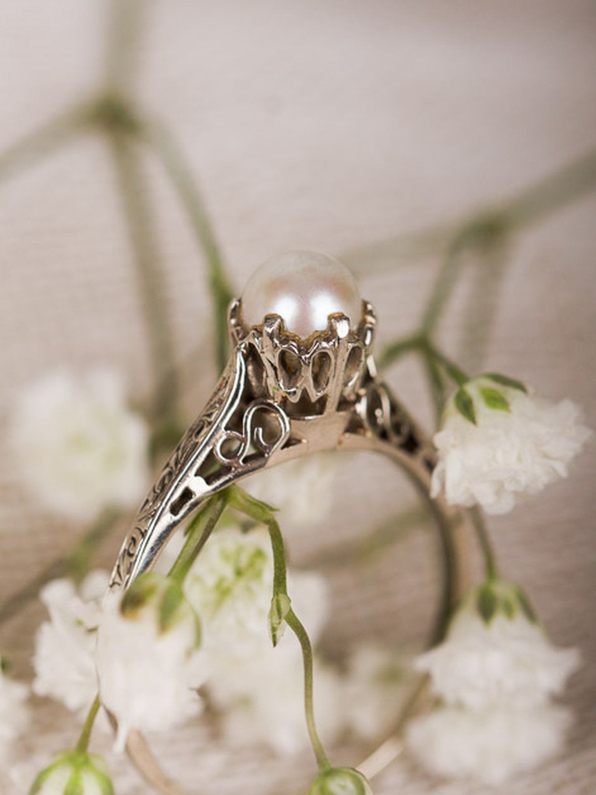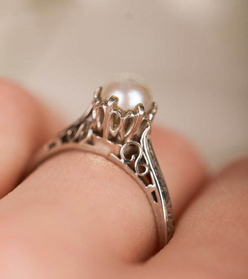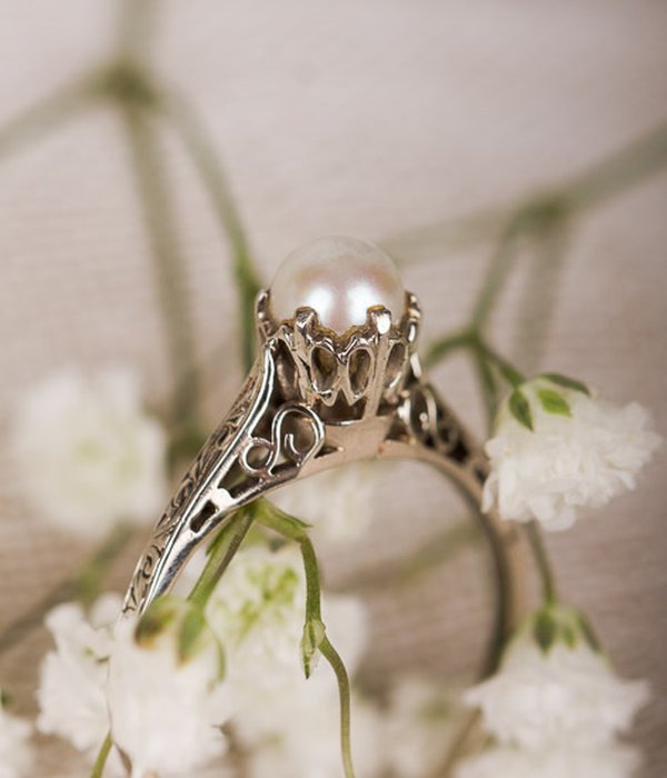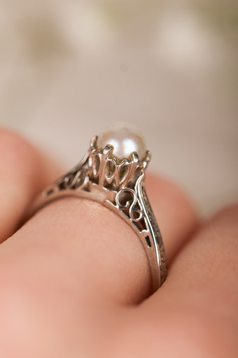 Romantisk vintage-ring i vitguld. Går bra att ändra storlek så att den passar dig.