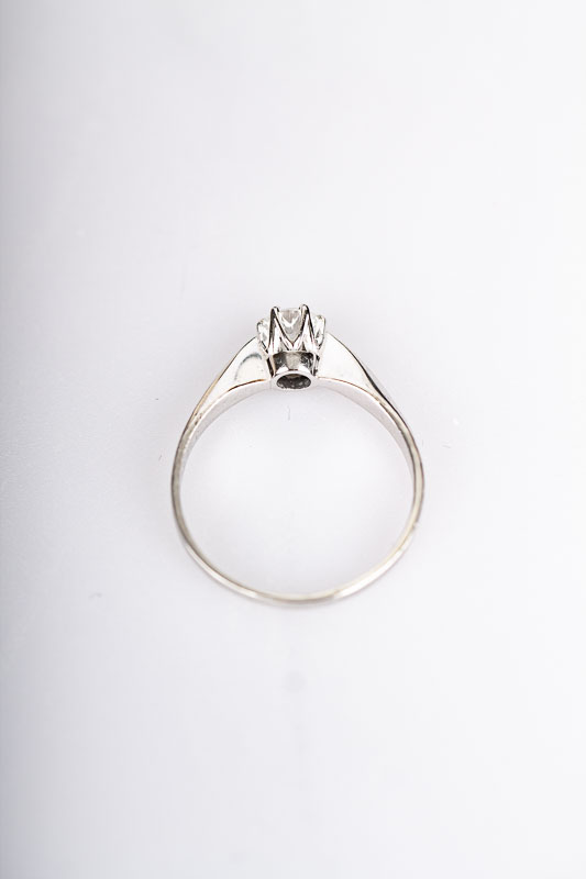 Vacker solitärring med avsmalnande skena till fantastiskt pris. Klor och sten i mycket gott skick. Går att storleksändra vid önskemål.