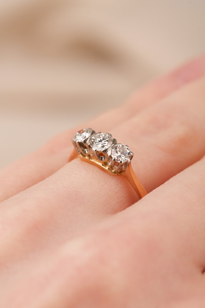 18K guld, 1 x 0,25 & 2 x 0,10 ct briljantslipade diamanter