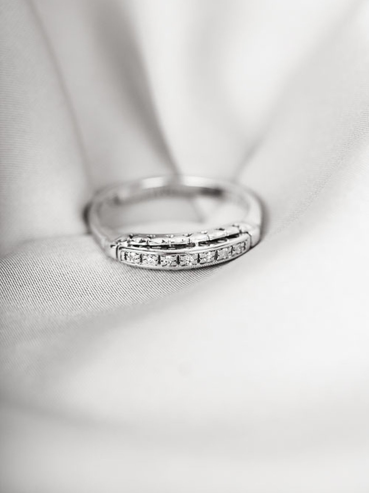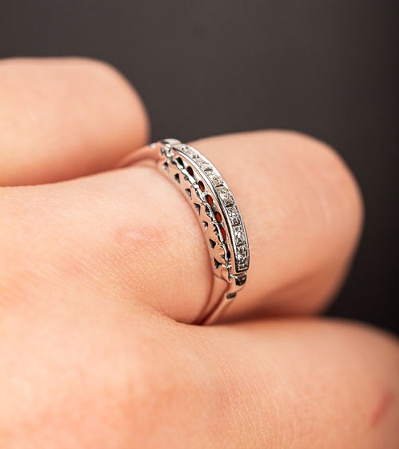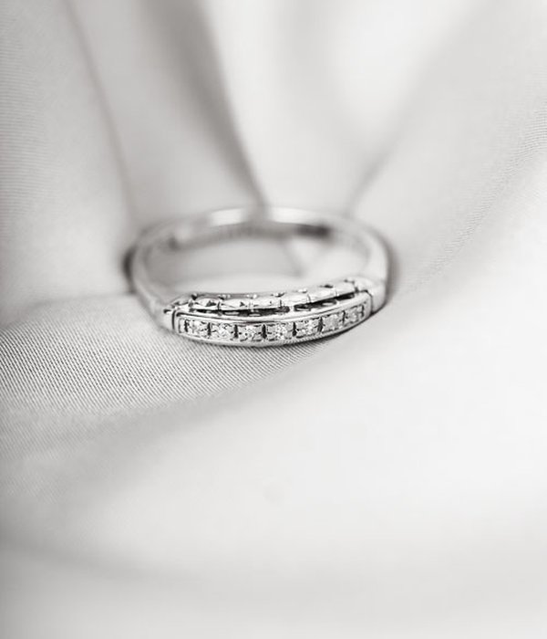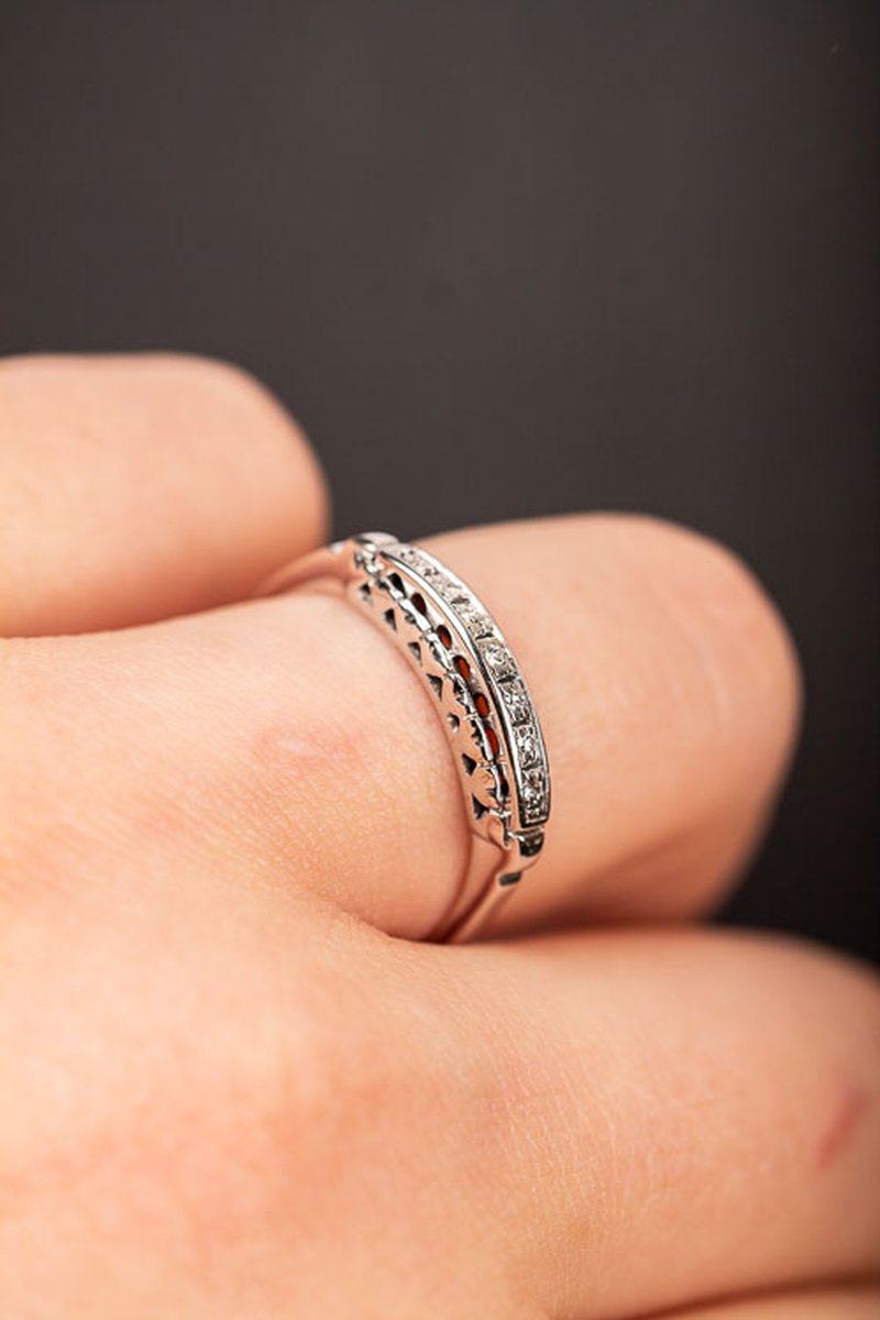 Vintage ring med 7st 0,01ct diamanter vacker fattade i en detaljerad ringskena i 18k vitguld.