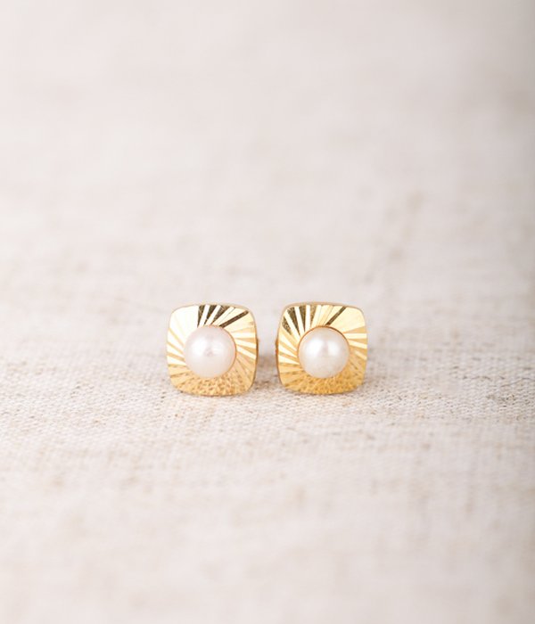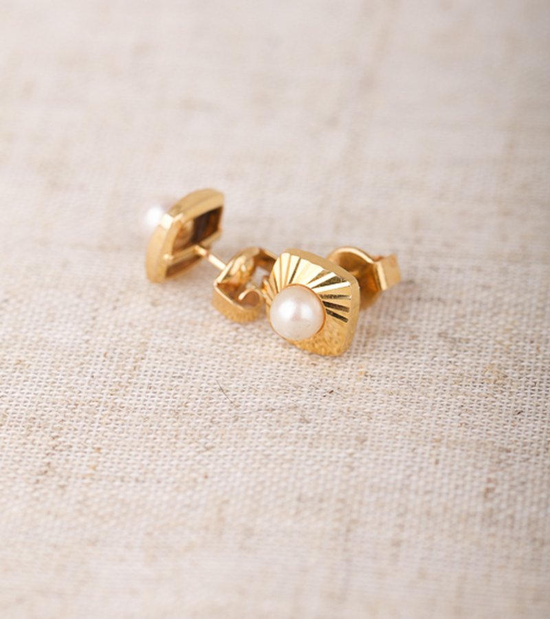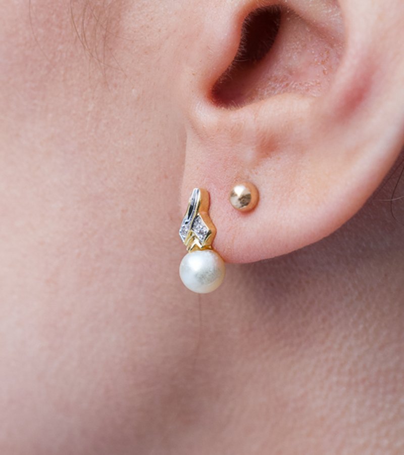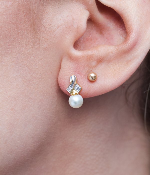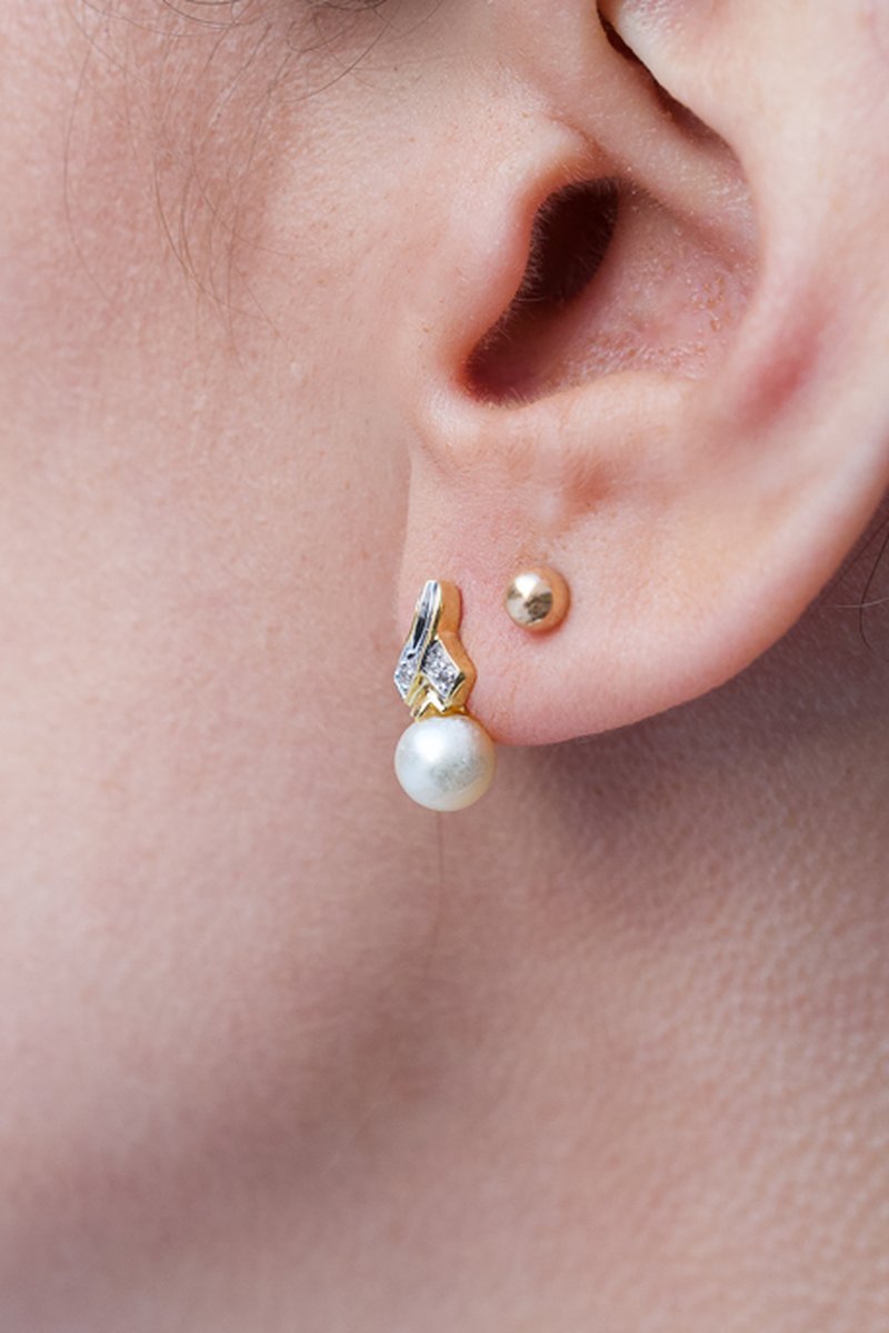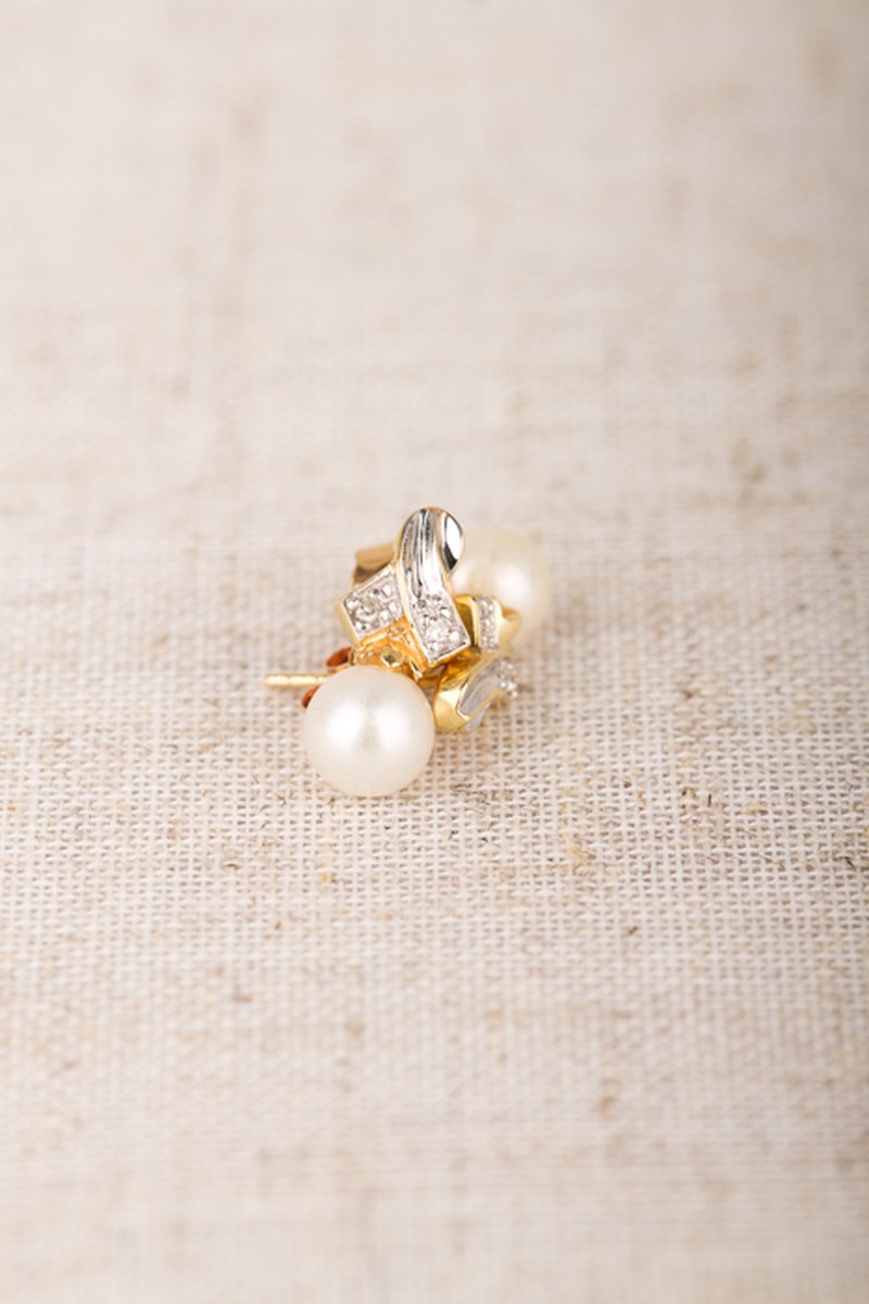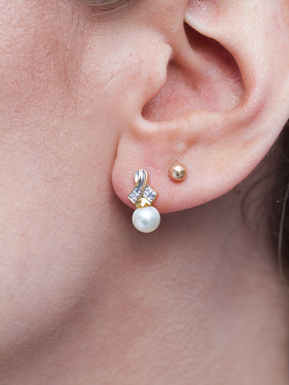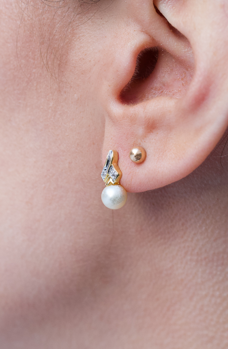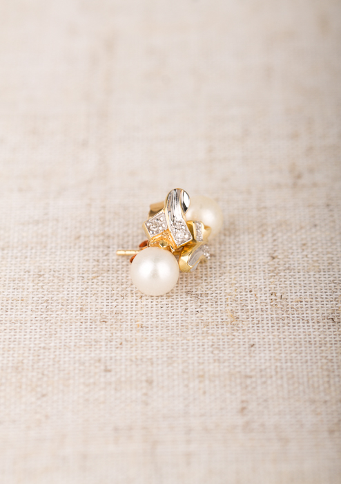 18K guld, 4 x 0,01 ct åttkantsslipade diamanter, två odlade pärlor á 6 mm