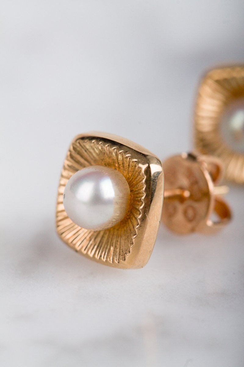 18k guld, två vita odlade pärlor 4,4 mm