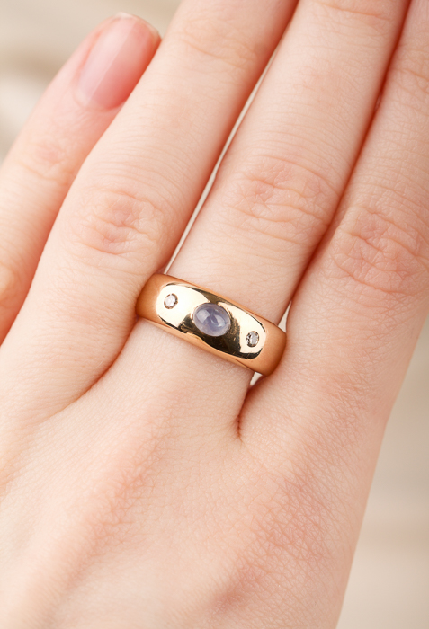 18K guld, månsten. Briljantslipade diamanter: 2 x 0,02 ct