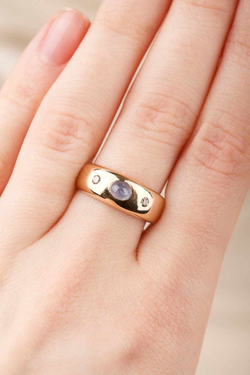 Fin vintagering från Malmö med en månsten och diamanter