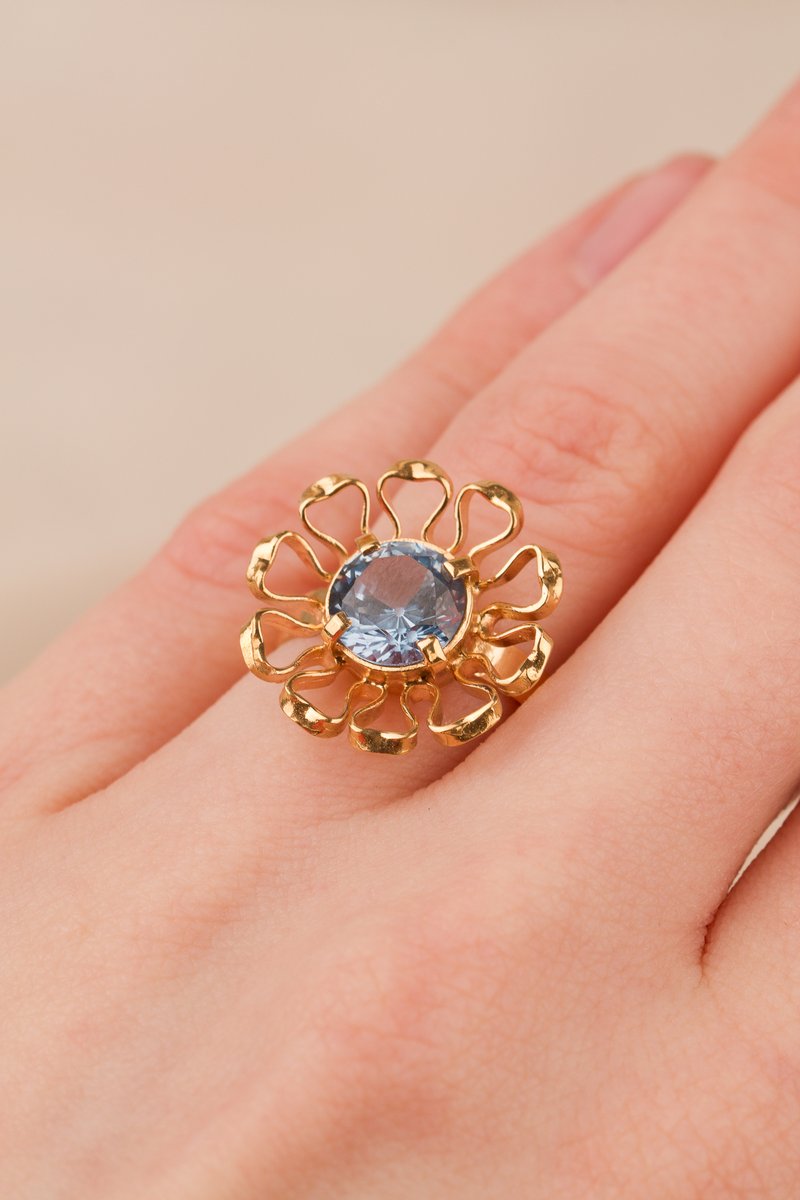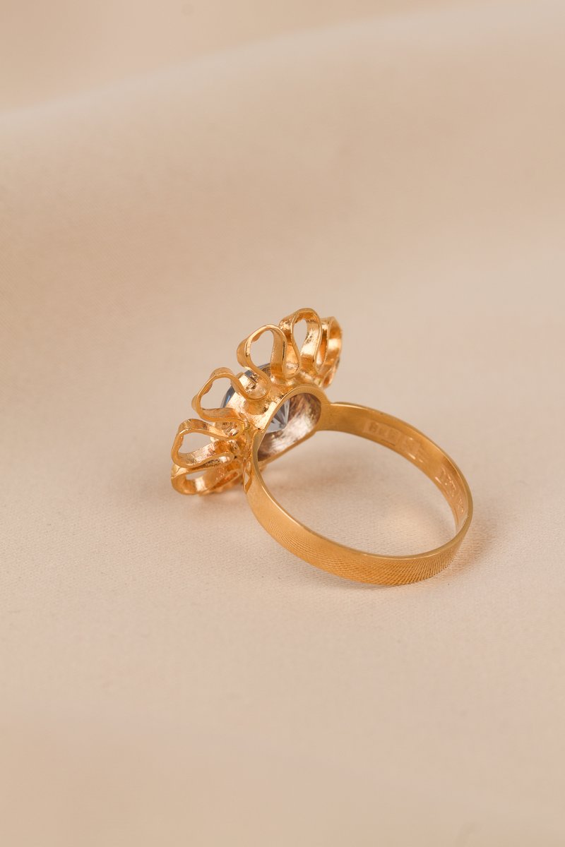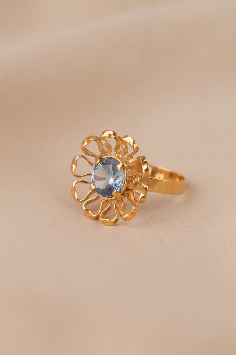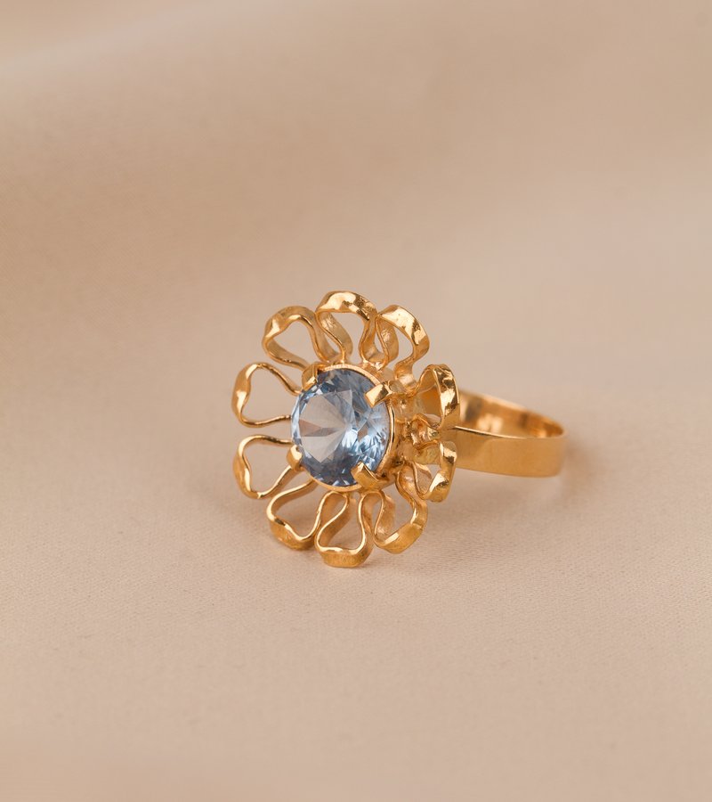 18K guld, blå imitationssten