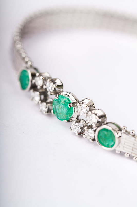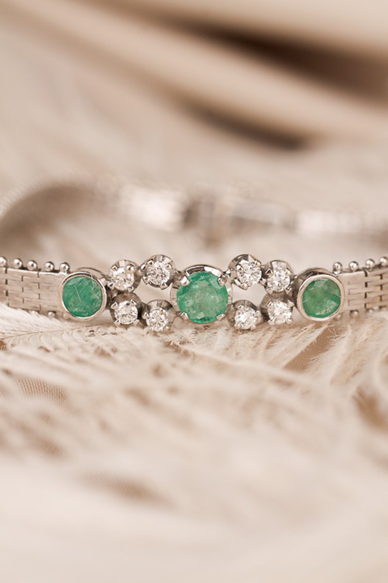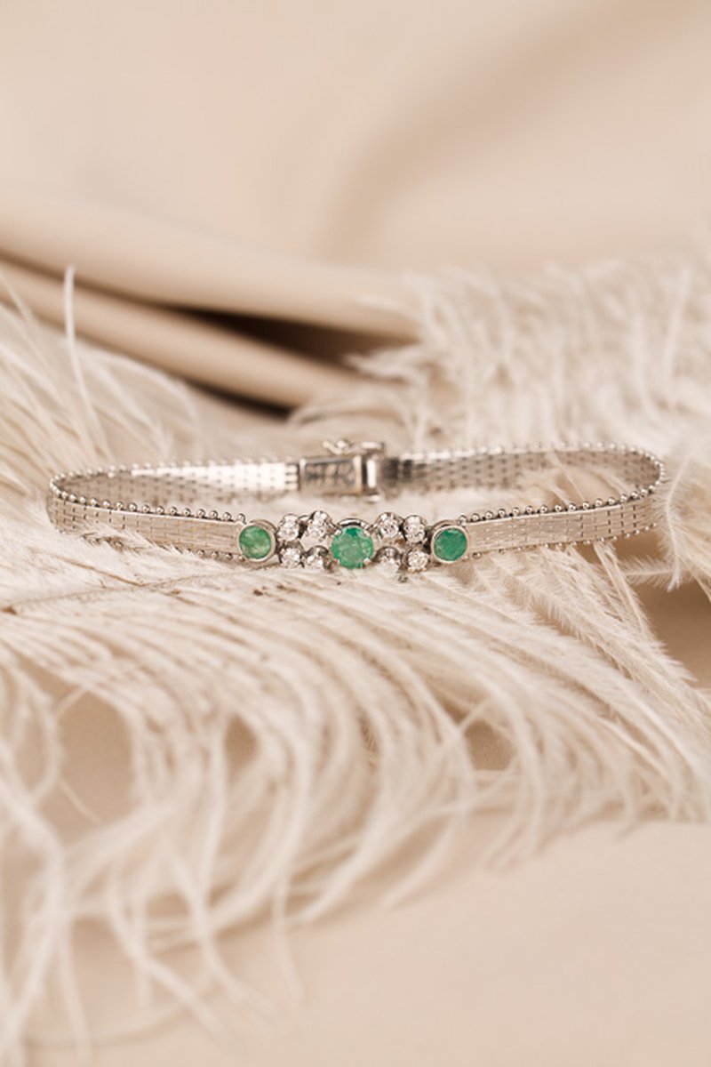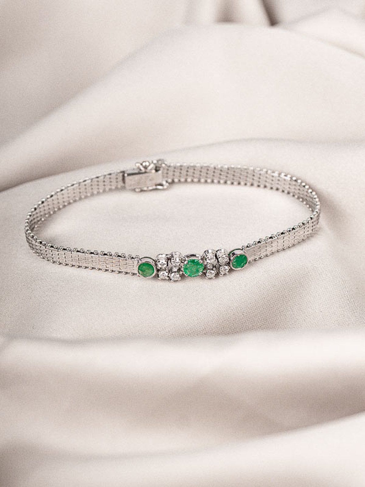 Halvstelt vitguldsarmband med både smaragder och diamanter för dig som söker det lilla extra. Mellan de tre smaragderna sitter 8st ca 0,045 ct briljantslipade diamanter. Armbandet är graverat med total carat i låset. Smaragder totalt 0,91ct och diamanter totalt 0,36ct enligt gravyr på låset