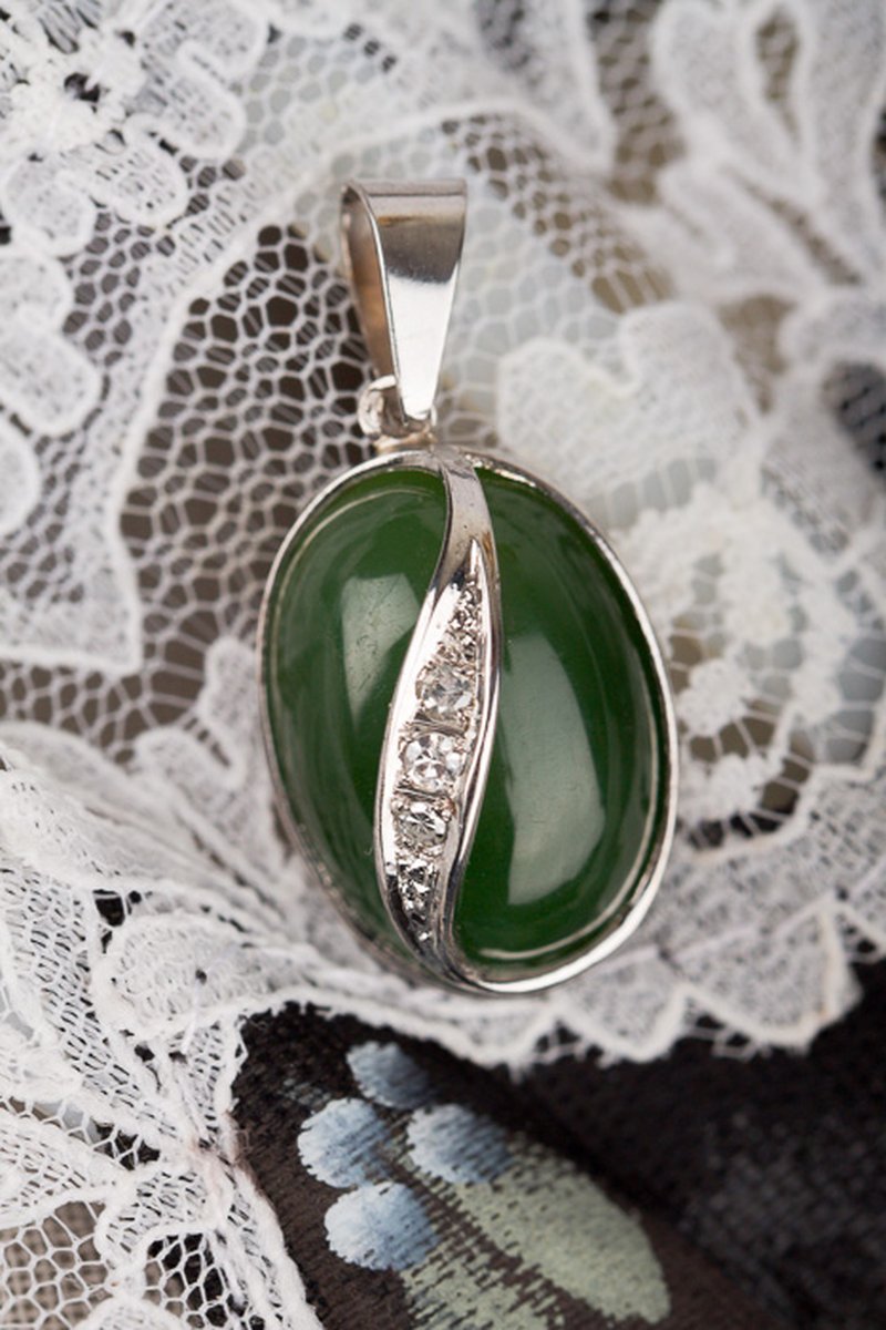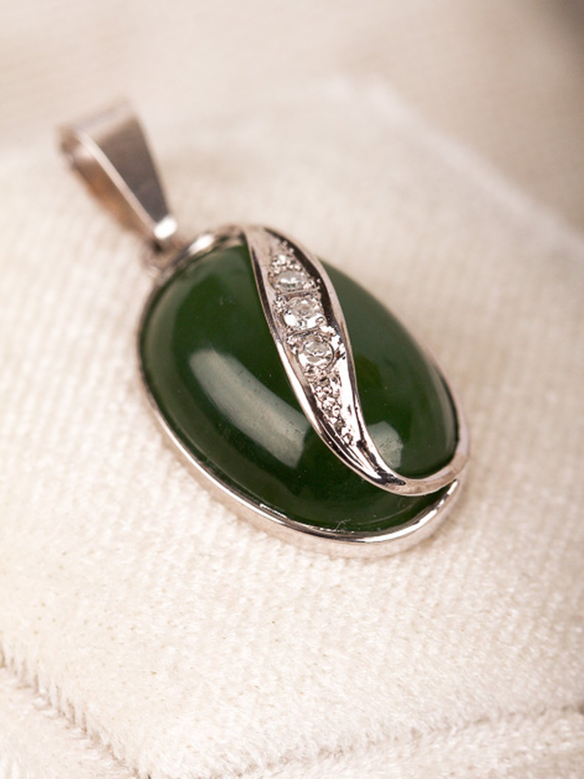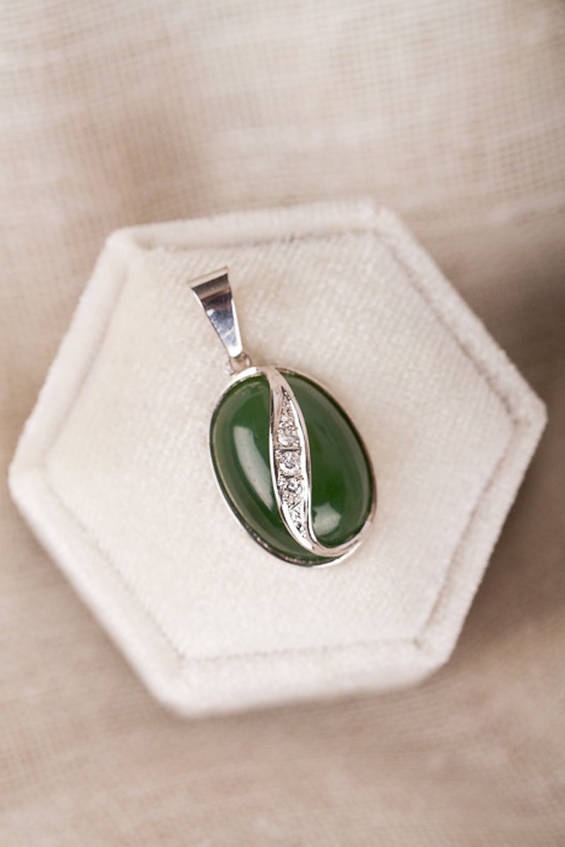 18K vitguld, Nefrit-sten och 2 x 0,015 + 1 x 0,025 ct diamanter