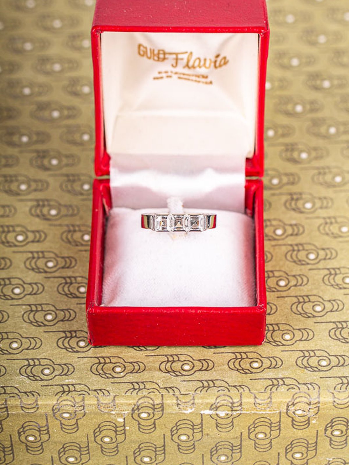 Vacker guldring tillverkad av Flavia, Skellefteå år 1964 med tre stycken bergkristaller. Solid ring.