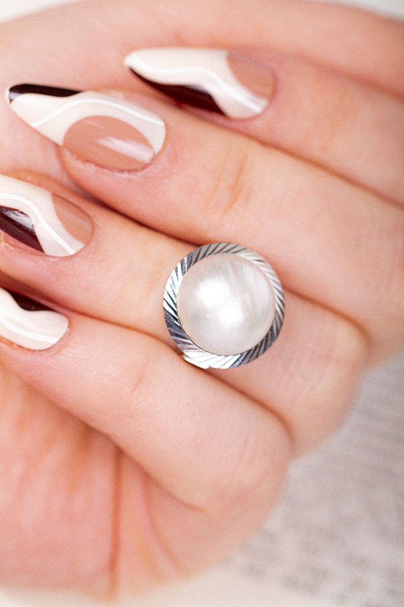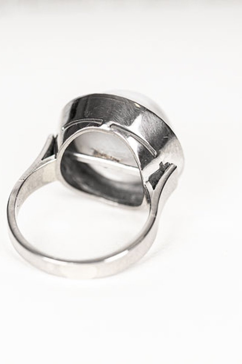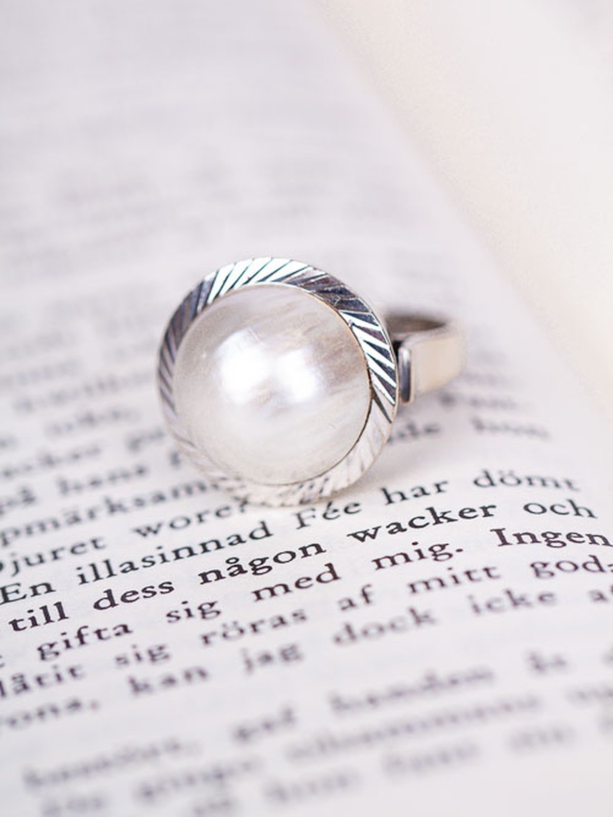 Lyxig vitguldsring med mabepärla. Pärlan omsluts vackert av en facetterad ram som tillför extra skimmer och elegans till den klassiska och stilrena designen. En ring som sticker ut i mängden. Går att storleksändra några storlekar både upp och ned.
